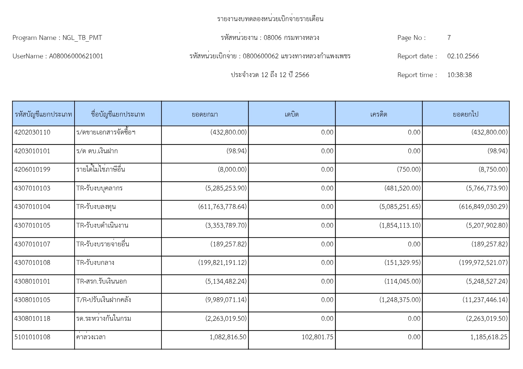 แขวงทางหลวงกำแพงเพชร แจ้งประชาสัมพันธ์รายงานงบทดลอง ประจำเดือน กันยายน 2566