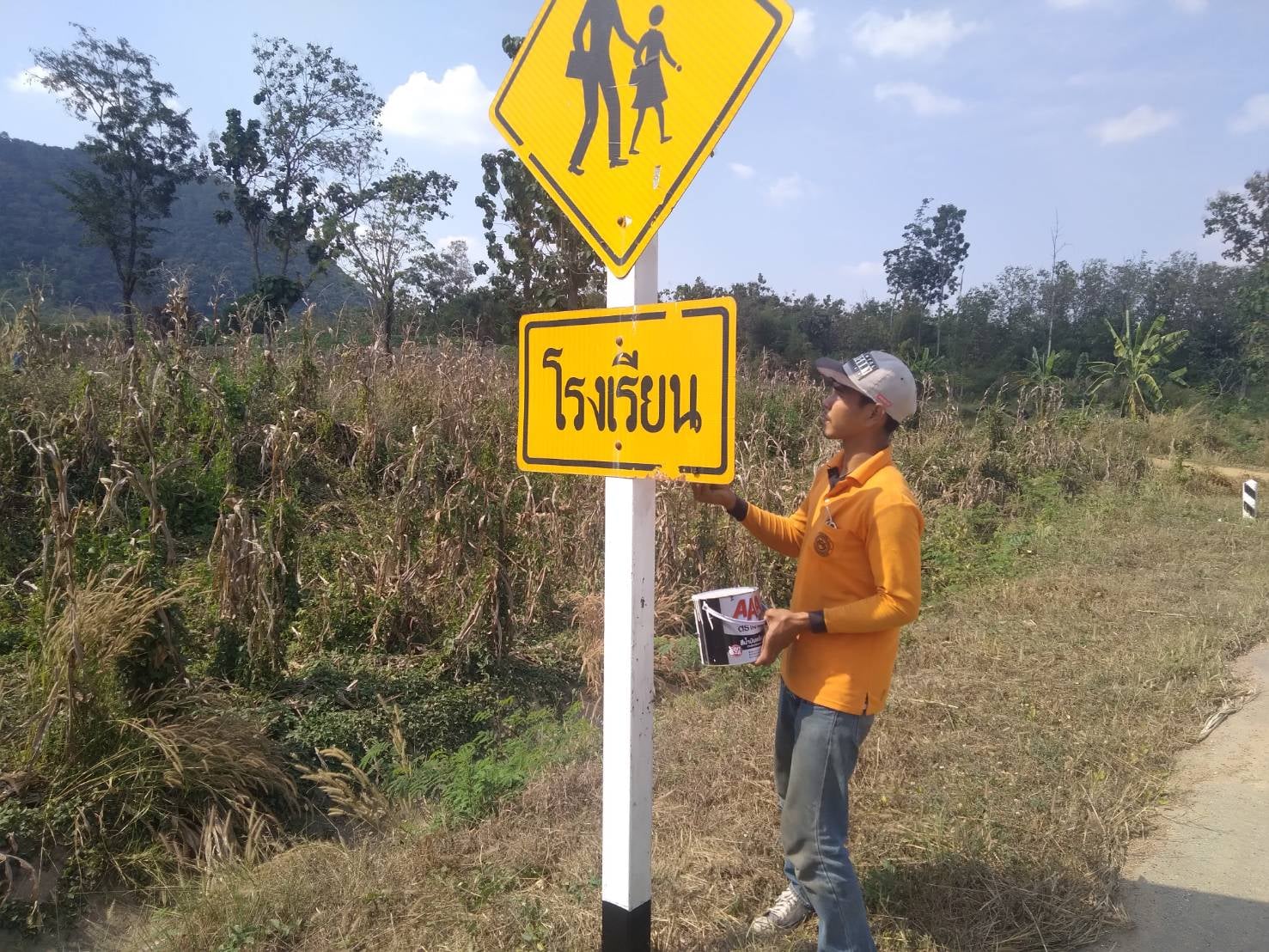 ข่าวประชาสัมพันธ์แขวงทางหลวงกำแพงเพชร วันที่ 14 มกราคม 2565 "แขวงฯ ดำเนินการทาสีเสาป้ายจราจร"