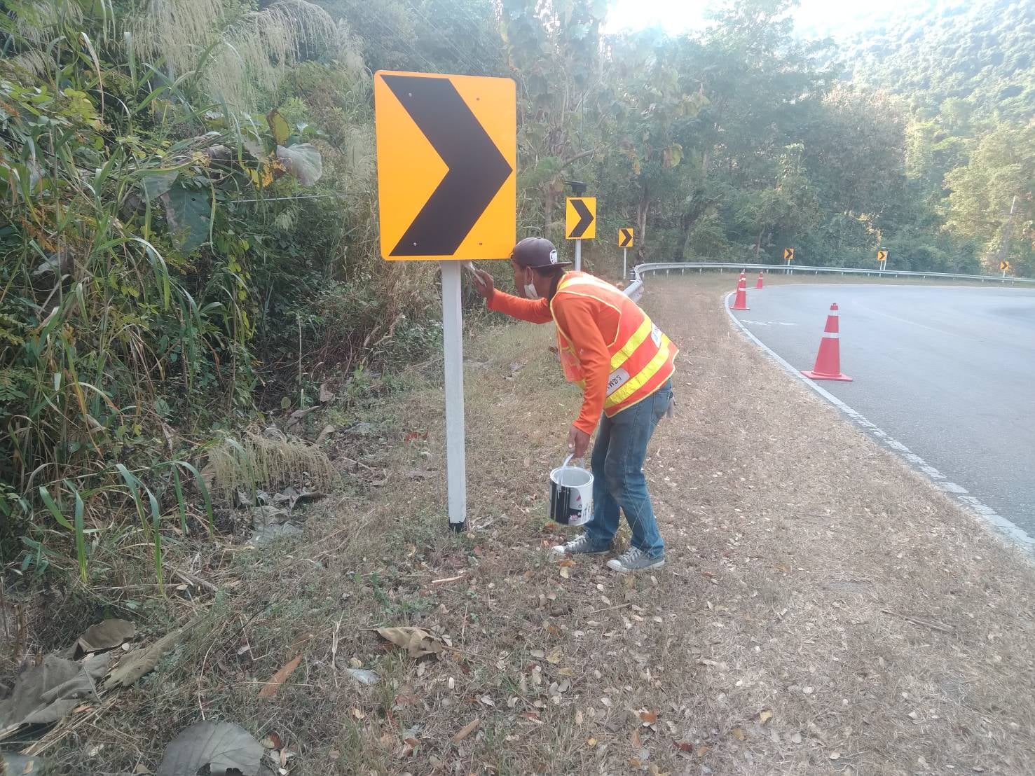 ข่าวประชาสัมพันธ์แขวงทางหลวงกำแพงเพชร วันที่ 13 มกราคม 2565 "แขวงฯ ดำเนินการทาสี์สาไฟฟ้าแสงสว่าง ทาสีเสาป้ายจราจร และราวกันอันตราย"