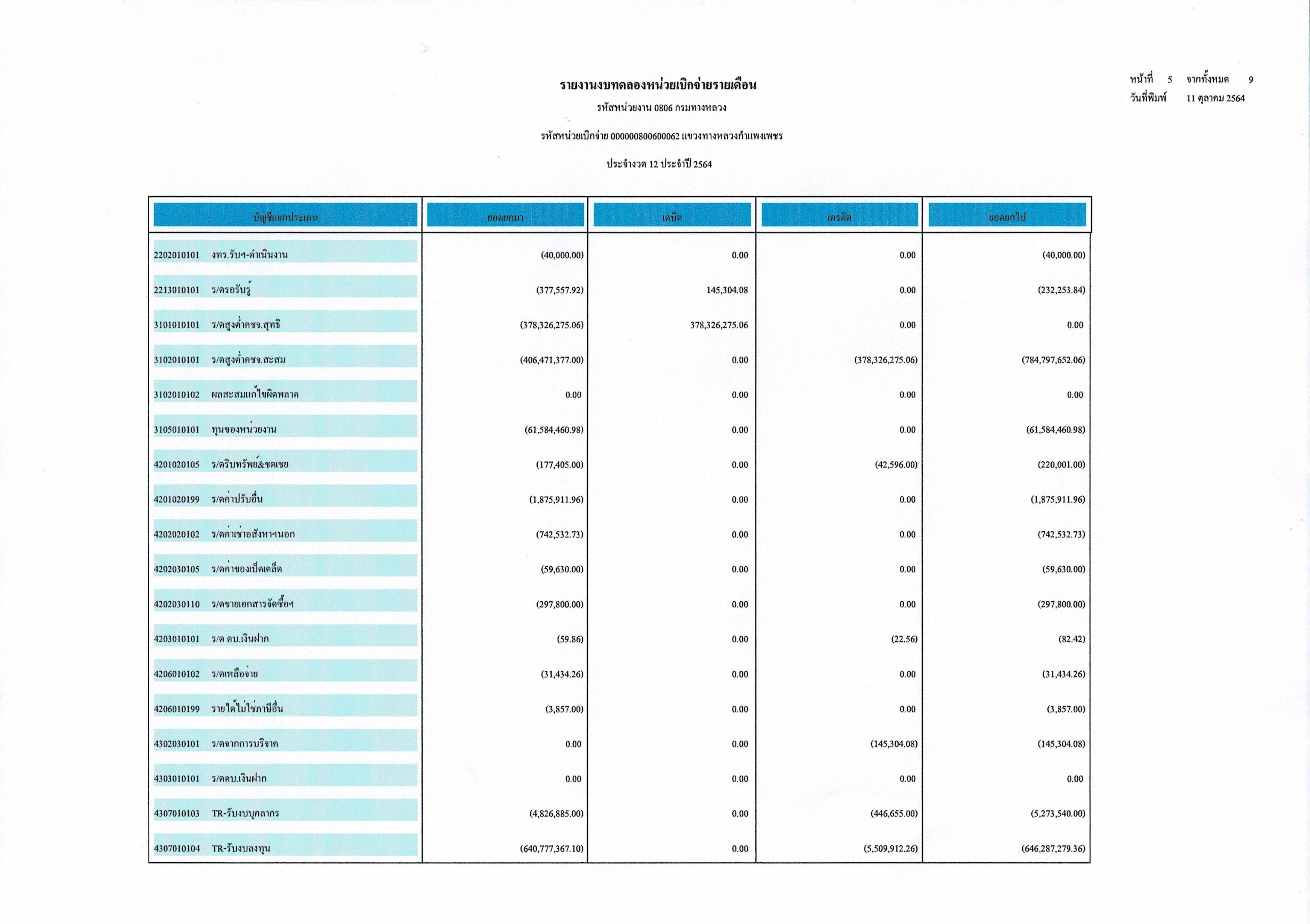 แขวงทางหลวงกำแพงเพชร แจ้งประชาสัมพันธ์รายงานงบทดลองปีงบประมาณ 2564