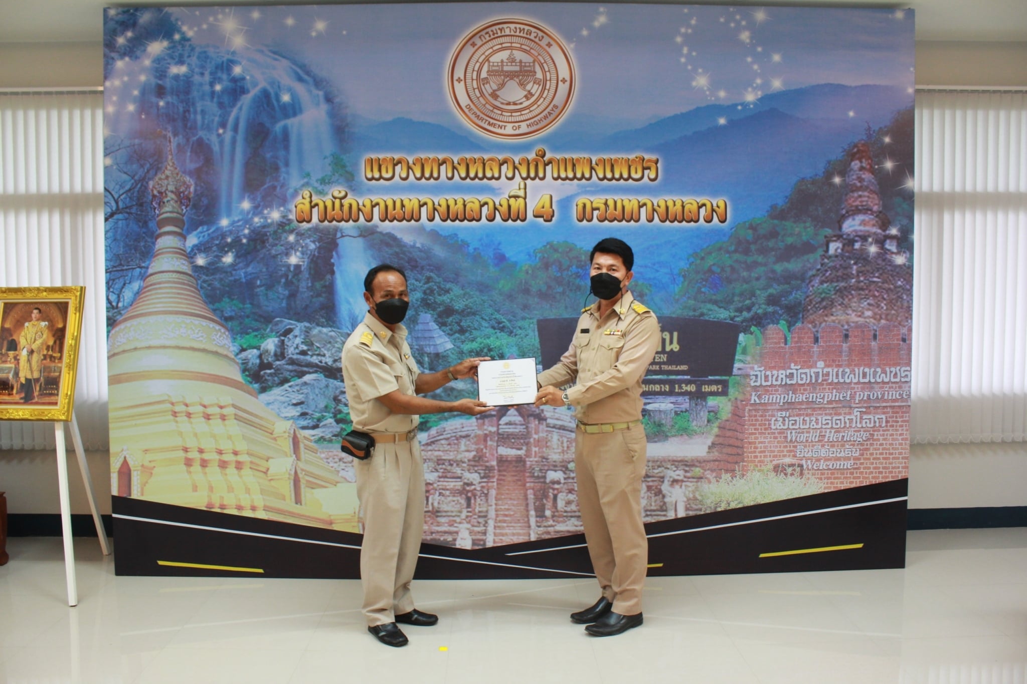 นายชัยศิริ ผูกใจเพื่อน เป็นประธานมอบโล่ที่ระลึกแก่เจ้าหน้าที่แขวงทางหลวงกำแพงเพชร ที่เกษียณอายุราชการประจำปี 2564