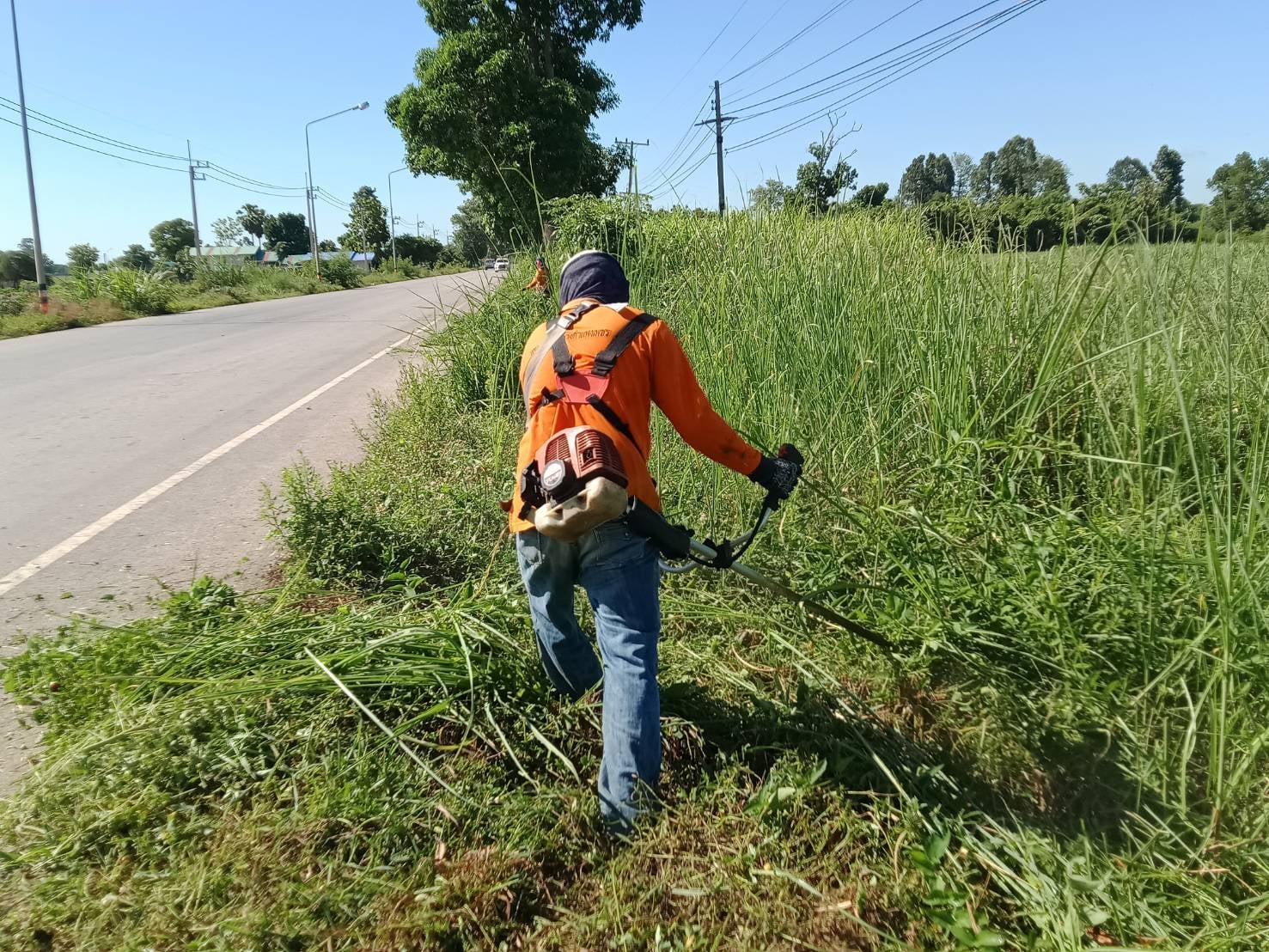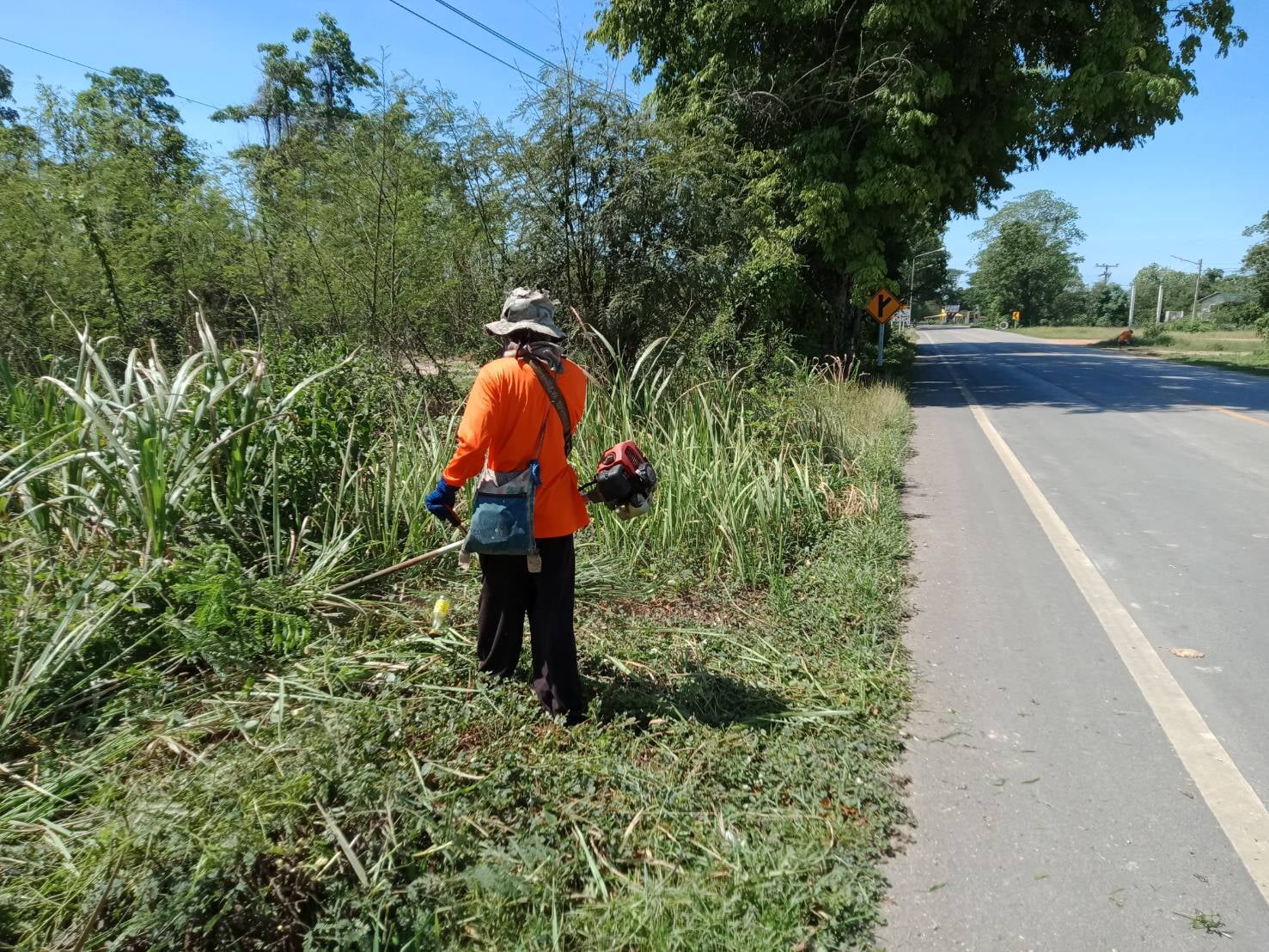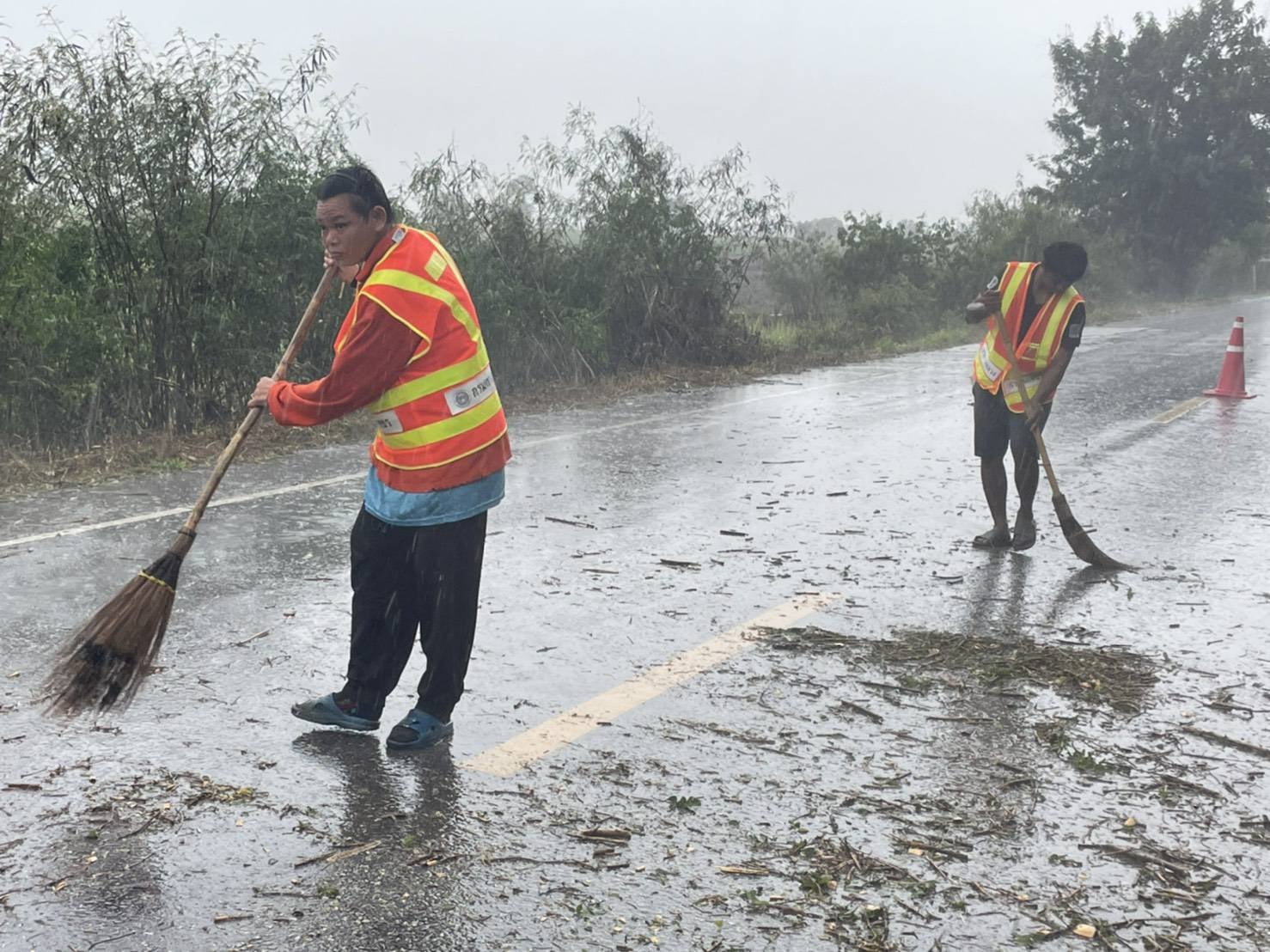 ข่าวประชาสัมพันธ์ "หมวดทางหลวงบ่อทอง ตัดต้นไม้ที่หักโค่นและทำความสะอาดผิวทาง"