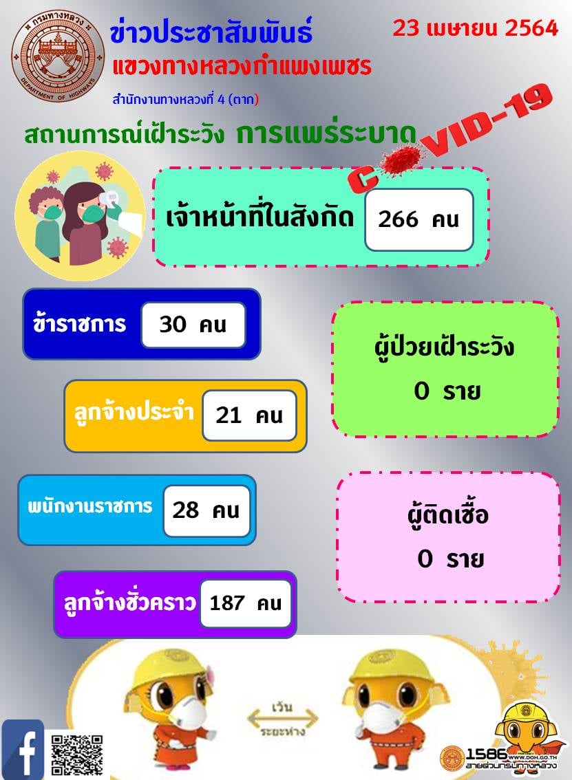 ข่าวประชาสัมพันธ์แขวงทางหลวงกำแพงเพชร วันที่ 23 เมษายน 2564 "การดำเนินการตามมาตรการป้องกันและควบคุมเชื้อไวรัส COVID-19"