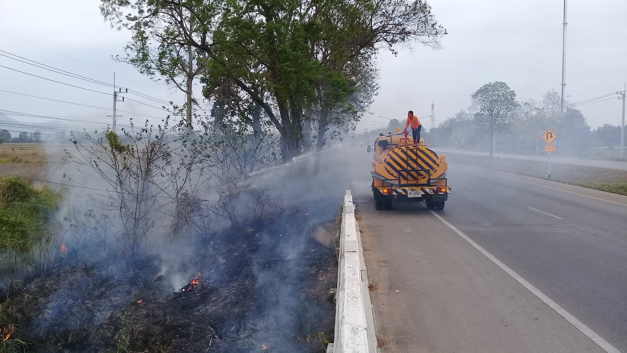 วันที่ 22 มีนาคม 2564 เวลา 09.10 น. แขวงทางหลวงกำแพงเพชร โดยหมวดทางหลวงโกสัมพี ดำเนินการดับไฟไหม้หญ้าข้างทาง ทางหลวงหมายเลข 1 ตอนนครชุม-วังเจ้า ระหว่าง กม.475+730-กม.475+760 ท้องที่บ้านเกาะรากเสียด ตำบลเพชรชมภู อำเภอโกสัมพีนคร จังหวัดกำแพงเพชร โดยนำรถน้ำประจำหมวดพร้อมเจ้าหน้าที่ดับไฟเพื่อป้องกันฝุ่น PM2.5 และควันไฟที่จะบดบังทัศนวิสัยในการขับขี่ของประชาชนผู้ใช้เส้นทาง