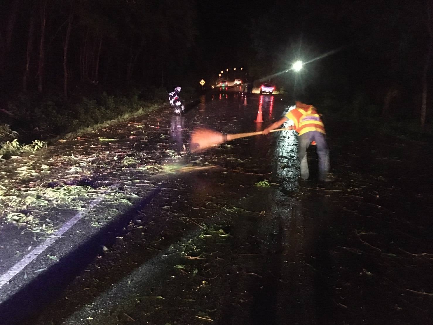 หมวดทางหลวงปากคลองลาน ตัดต้นไม้ที่หักโค่นและทำความสะอาดผิวทาง