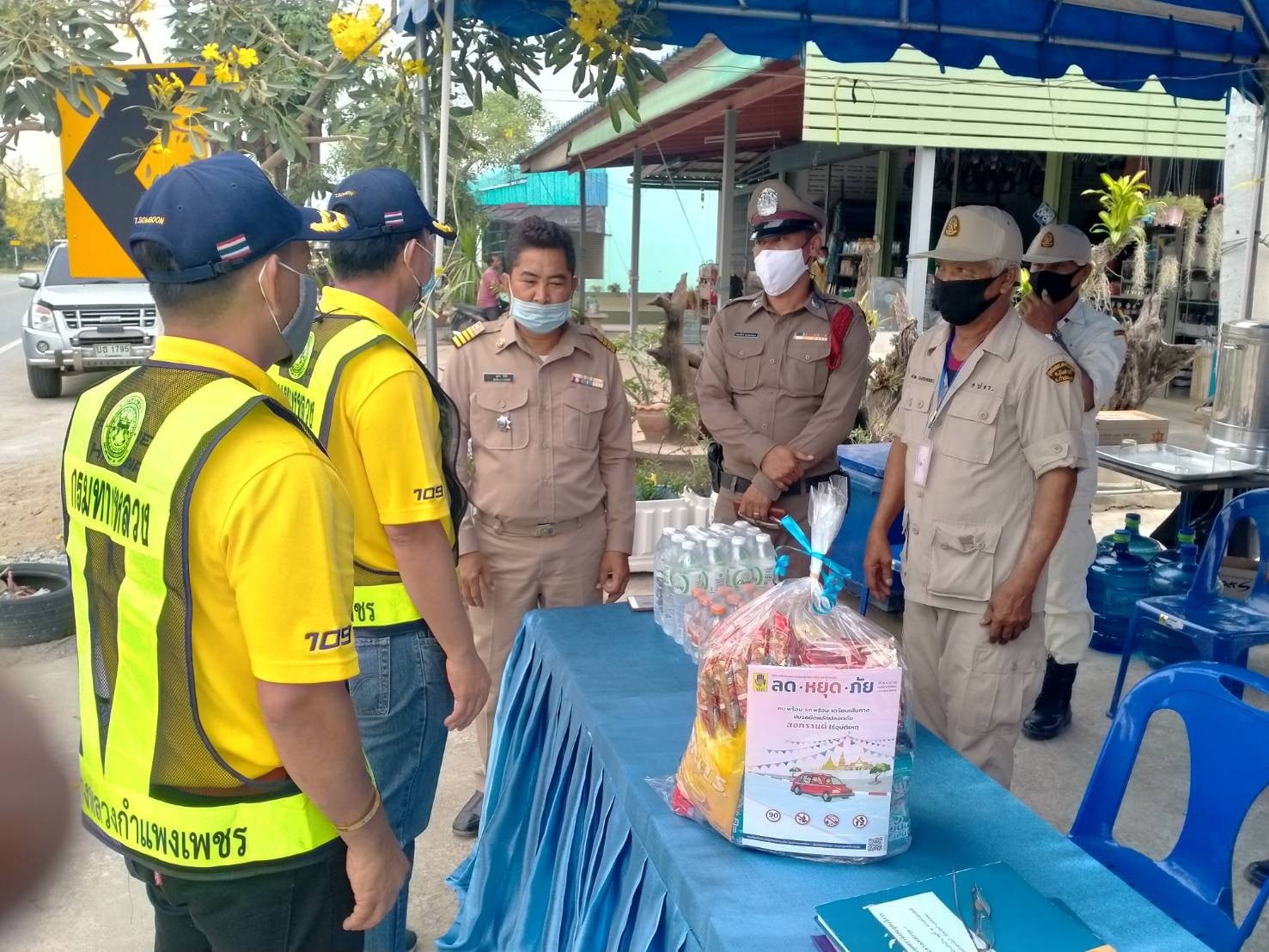นายชัยศิริ ผูกใจเพื่อน ผู้อำนวยการแขวงทางหลวงกำแพงเพชร ร่วมกับคณะจังหวัด เข้าตรวจเยี่ยมจุดบริการประชาชนในช่วงเทศกาลสงกรานต์ 2564