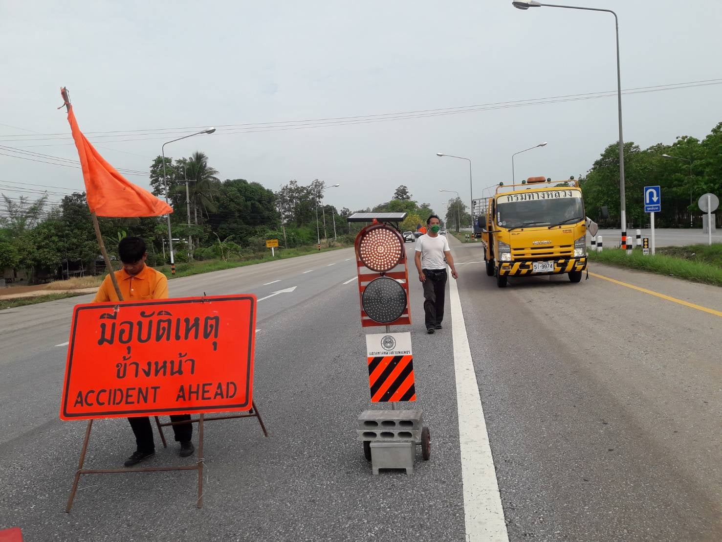 ดังนั้น แขวงทางหลวงกำแพงเพชร โดยนางณิชาดา รอดพินิจ หัวหน้าหมวดทางหลวงโกสัมพีนคร และเจ้าหน้าที่หมวดฯ จึงได้จัดการจราจรเพื่ออำนวยความสะดวกกับท่านผู้ใช้เส้นทางโดยจัดให้รถวิ่งสวนทางด้านซ้ายทาง (ขาขึ้นไปตาก) จึงขอให้ท่านที่ใช้รถใช้ถนนช่วง ระหว่าง กม.480+610 – กม.482+120 โปรดใช้เส้นทางด้วยความระมัดระวัง