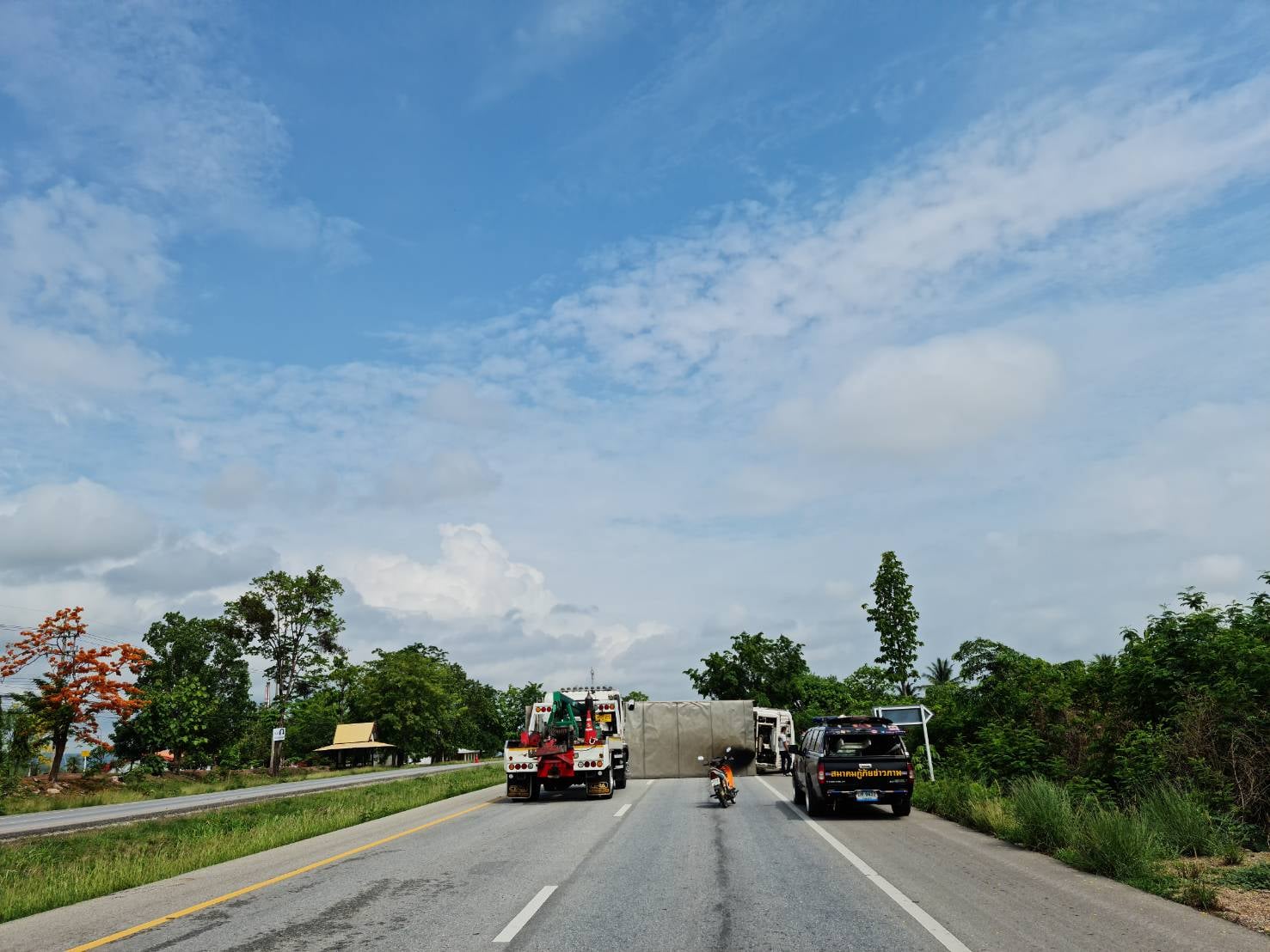ข่าวประชาสัมพันธ์แขวงทางหลวงกำแพงเพชร "การจราจรผ่านได้ปกติเมื่อเวลา 19.30 น. กรณีรถบรรทุกพลิกคว่ำกีดขวางการจราจร"