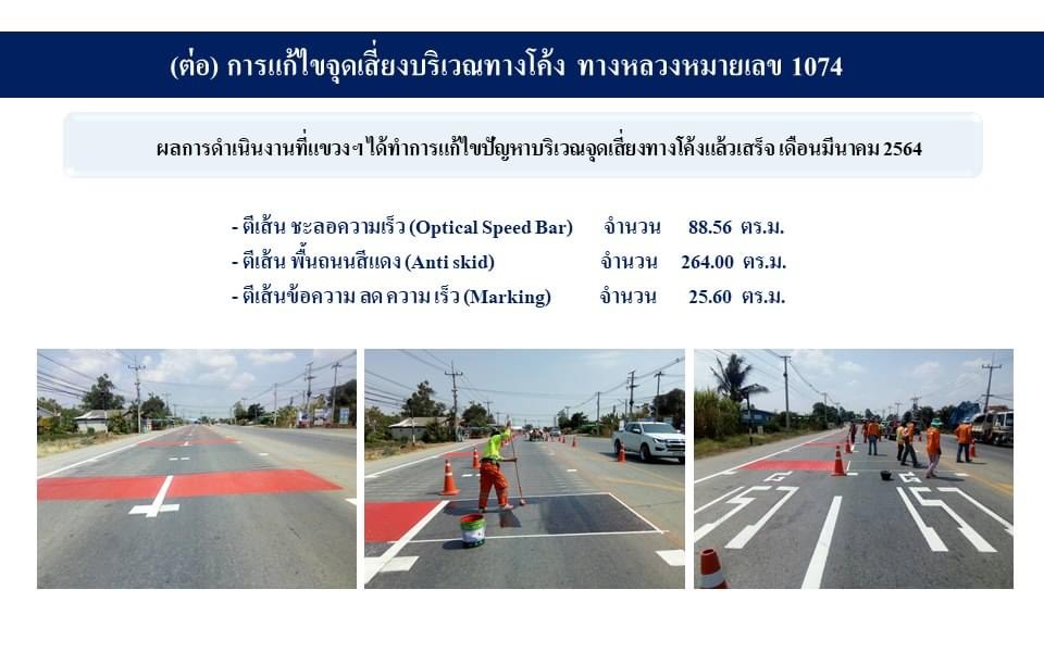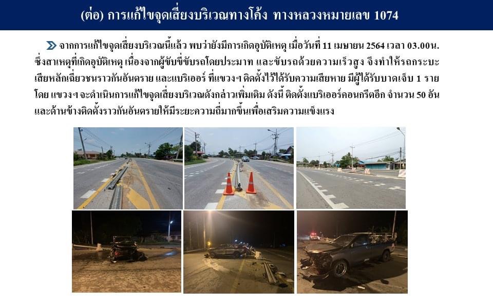 การแก้ไขจุดเสี่ยงบริเวณทางโค้ง ทางหลวงหมายเลข 1074