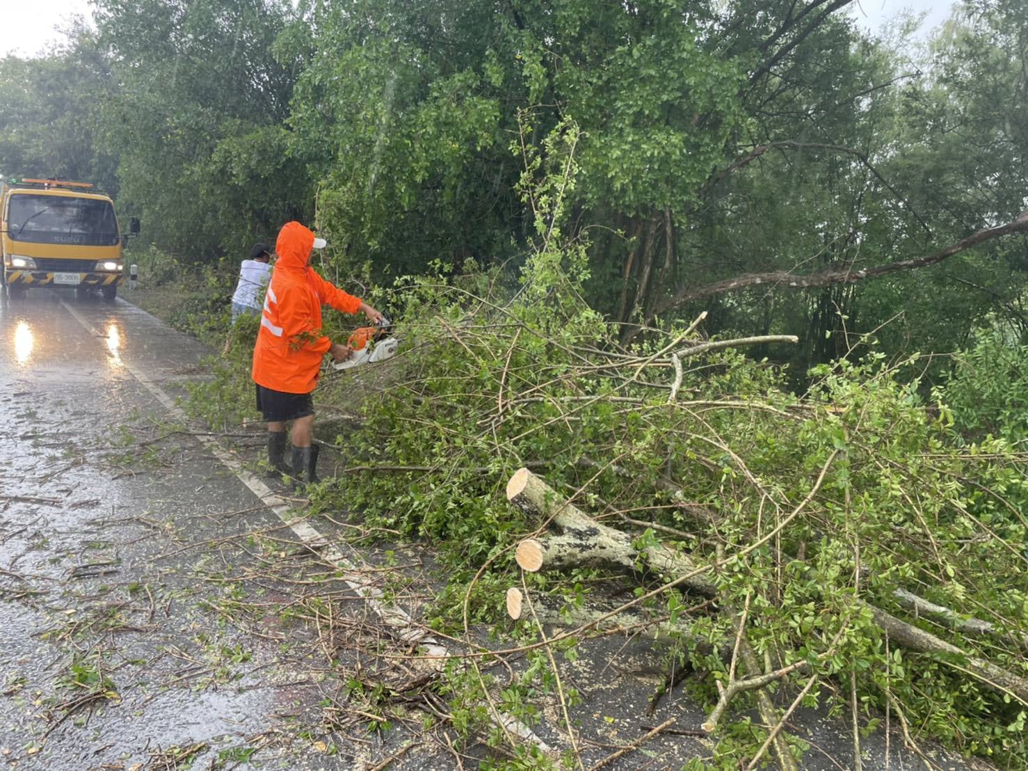 พบเหตุไฟไหม้ข้างทาง ต้นไม้หักโค่น ไฟฟ้าดับ ผิวทางชำรุด