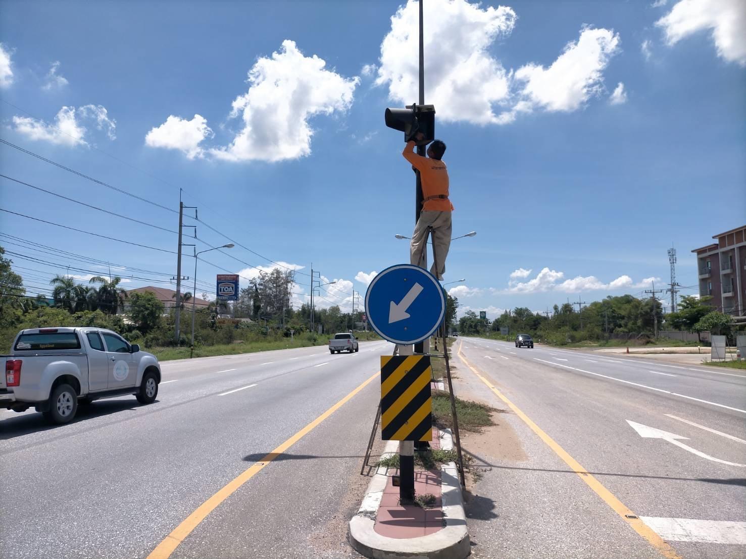 แขวงทางหลวงกำแพงเพชร โดย นายชัยศิริ ผูกใจเพื่อน ผู้อำนวยการแขวงทางหลวงกำแพงเพชร ได้มอบหมายให้งานปรับซ่อม ดำเนินการซ่อมแซมไฟสัญญาณจราจร(กระพริบ) เพื่อความสะดวก และความปลอดภัยแก่ผู้ใช้เส้นทาง