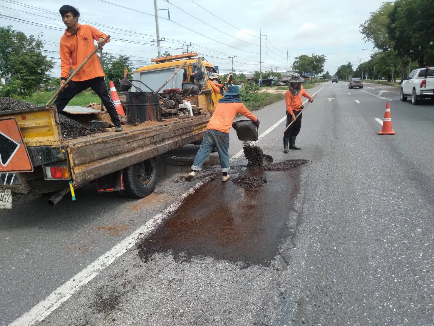 แขวงทางหลวงกำแพงเพชร โดย นายชัยศิริ ผูกใจเพื่อน ผู้อำนวยการแขวงทางหลวงกำแพงเพชร ได้มอบหมายให้หมวดทางหลวงคลองขลุง ดำเนินการปะซ่อมผิวทาง เพื่อความสะดวก และความปลอดภัยแก่ผู้ใช้เส้นทาง