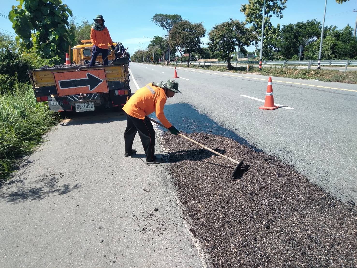 แขวงทางหลวงกำแพงเพชร โดย นายชัยศิริ ผูกใจเพื่อน ผู้อำนวยการแขวงทางหลวงกำแพงเพชร ได้มอบหมายให้หมวดทางหลวงคลองขลุง ดำเนินการปะซ่อมผิวทาง เพื่อความสะดวก และความปลอดภัยแก่ผู้ใช้เส้นทาง
