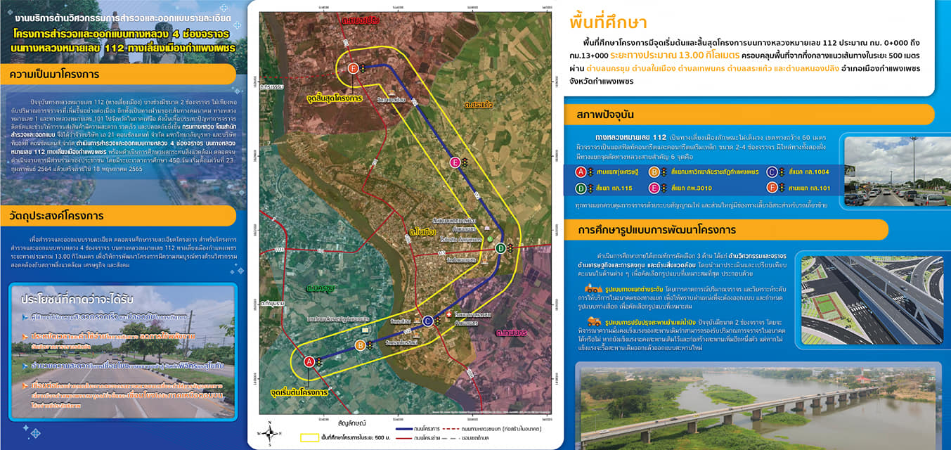 ข่าวประชาสัมพันธ์โครงการสำรวจและออกแบบทางหลวง 4 ช่องจราจร บนทางหลวงหมายเลข 112 ทางเลี่ยงเมืองกำแพงเพชร