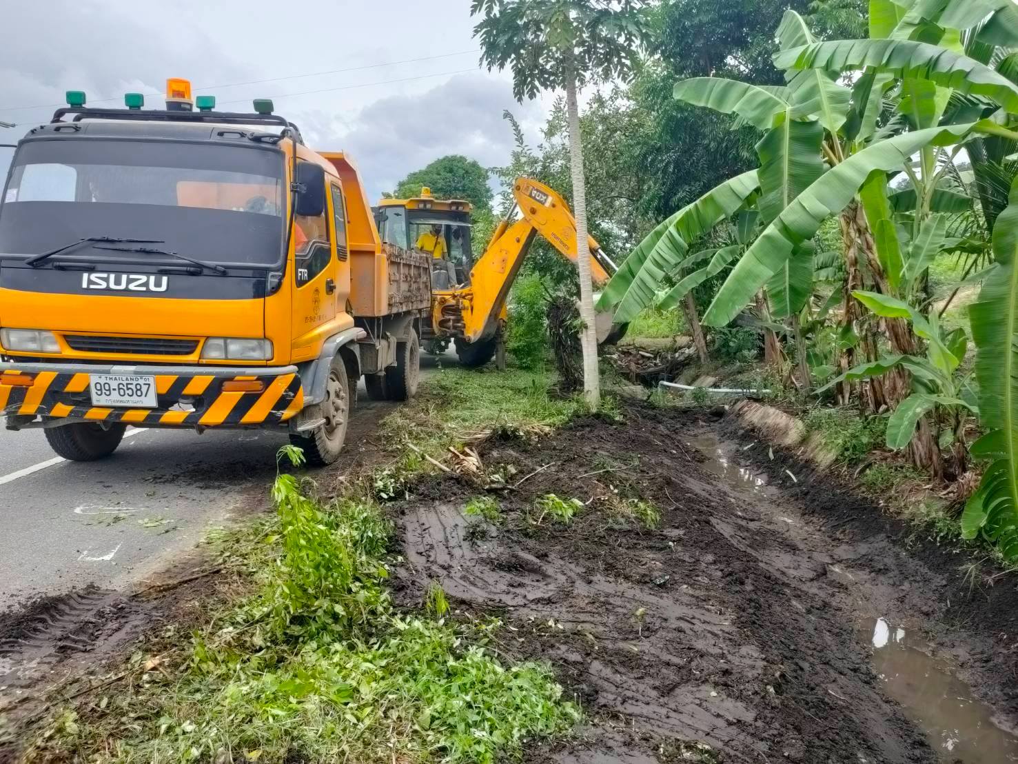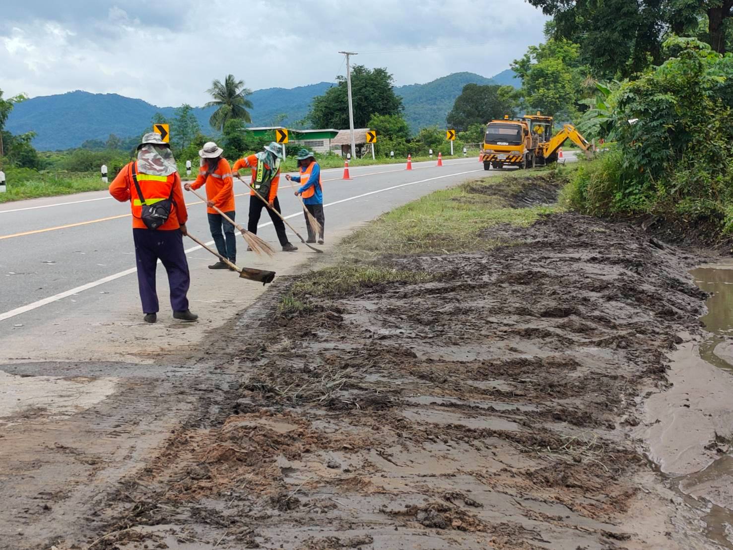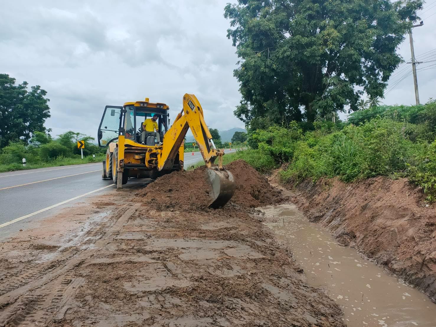 แขวงทางหลวงกำแพงเพชร โดย หมวดทางหลวงคลองลานพัฒนา ดำเนินการขุดลอกทางระบายน้ำ ทล.1117 ตอน คลองแม่ลาย - คลองลาน ระหว่าง กม.52+400 - กม.52+515 เพื่อให้ความสะดวกและปลอดภัยแก่ผู้ใช้เส้นทาง