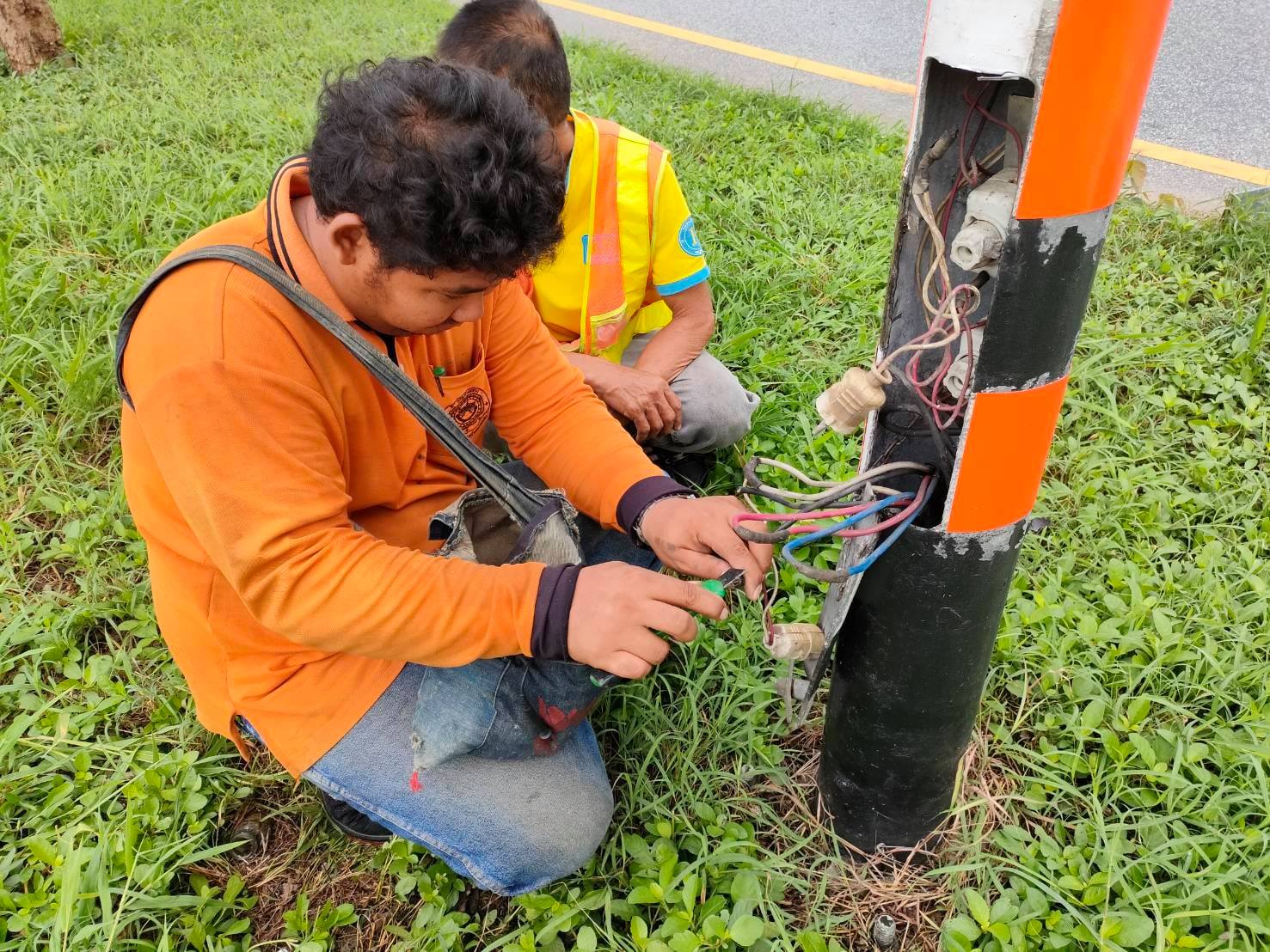 แขวงทางหลวงกำแพงเพชร โดย งานปรับซ่อม ดำเนินการซ่อมแซมไฟฟ้าแสงสว่าง ทางหลวงหมายเลข 1 ตอน นครชุม - วังเจ้า ระหว่าง กม.483+786 - กม.492+576 เพื่อความสะดวก และความปลอดภัยแก่ผู้ใช้เส้นทาง
