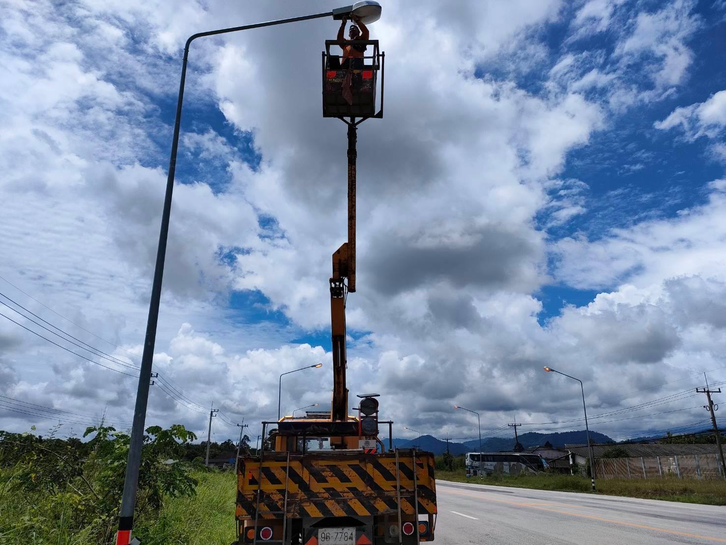 แขวงทางหลวงกำแพงเพชร โดย งานปรับซ่อม ดำเนินการซ่อมแซมไฟฟ้าแสงสว่าง ทางหลวงหมายเลข 1117 ตอน คลองแม่ลาย - อุ้มผาง ระหว่าง กม.35+307 - กม.37+800 เพื่อความสะดวก และความปลอดภัยแก่ผู้ใช้เส้นทาง