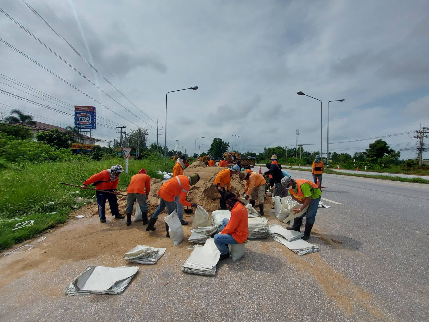 แขวงทางหลวงกำแพงเพชร โดย หมวดทางหลวงคลองขลุง ร่วมกับ หมวดทางหลวงบ่อทอง, หมวดทางหลวงนครชุม, หมวดทางหลวงคลองลานพัฒนา, หมวดทางหลวงปากคลองลาน และหมวดทางหลวงคณฑี ดำเนินการเรียงกระสอบทรายเพื่อสนับสนุนหมวด ทางหลวงหมายเลข 1 ตอน โนนปอแดง - ปากดง ระหว่าง กม.391+000 - กม.392+000 ด้านซ้ายทาง เพื่อให้ความสะดวกและปลอดภัยแก่ผู้ใช้เส้นทาง