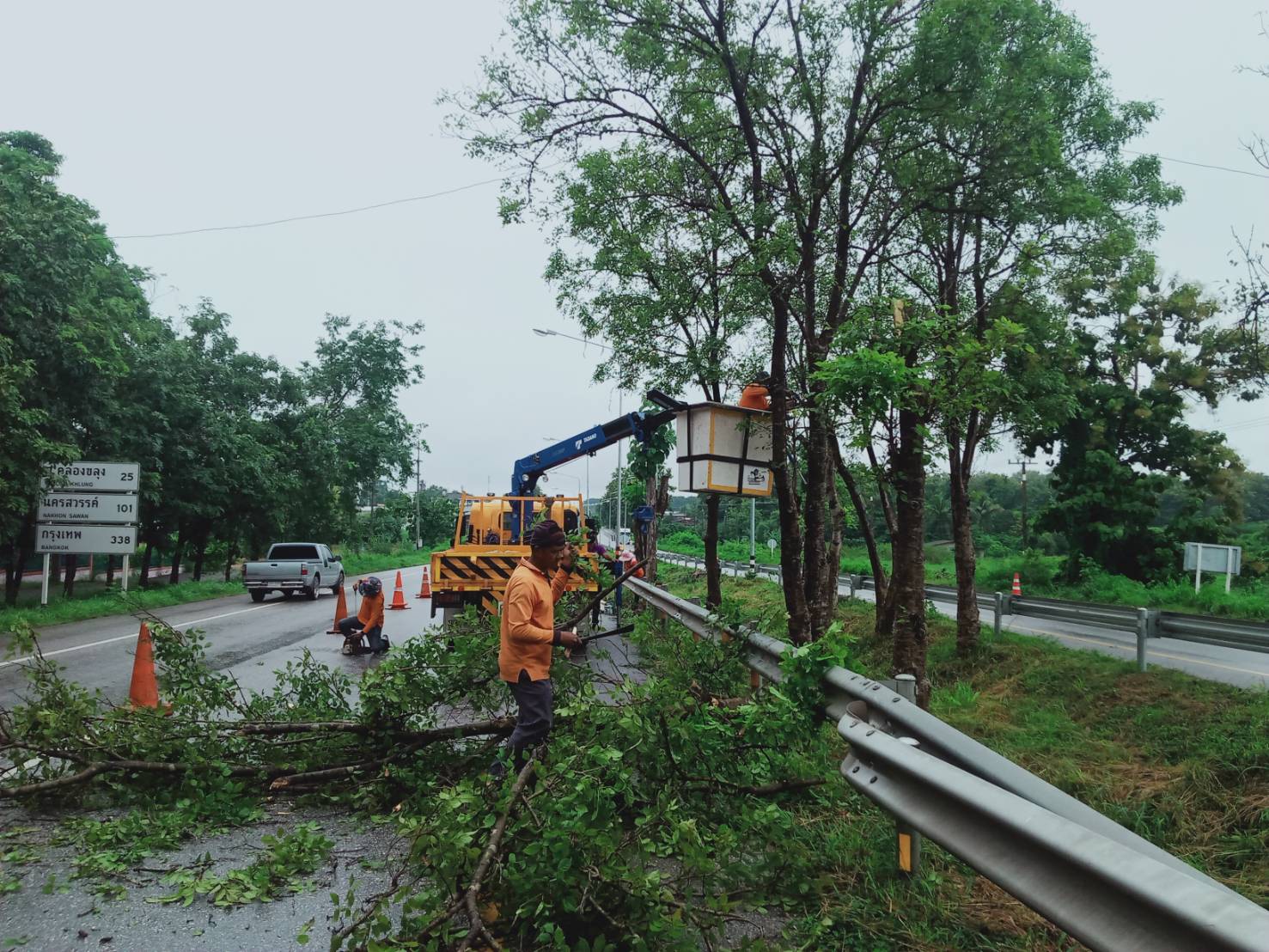 แขวงทางหลวงกำแพงเพชร โดย หมวดทางหลวงคลองขลุง, หมวดทางหลวงโกสัมพีนคร, หมวดทางหลวงบ่อทอง, หมวดทางหลวงนครชุม, หมวดทางหลวงปากคลองลาน, หมวดทางหลวงคลองลานพัฒนา, หมวดทางหลวงคณฑี และงานวางแผน ดำเนินการตัดหญ้าลาดคันทาง ร่องกลางถนน เกาะกลางถนน ตัดแต่งไม้ดอกไม้ประดับ และตัดแต่งกิ่งต้นไม้ เพื่อให้ความสะดวกและปลอดภัยแก่ผู้ใช้เส้นทาง