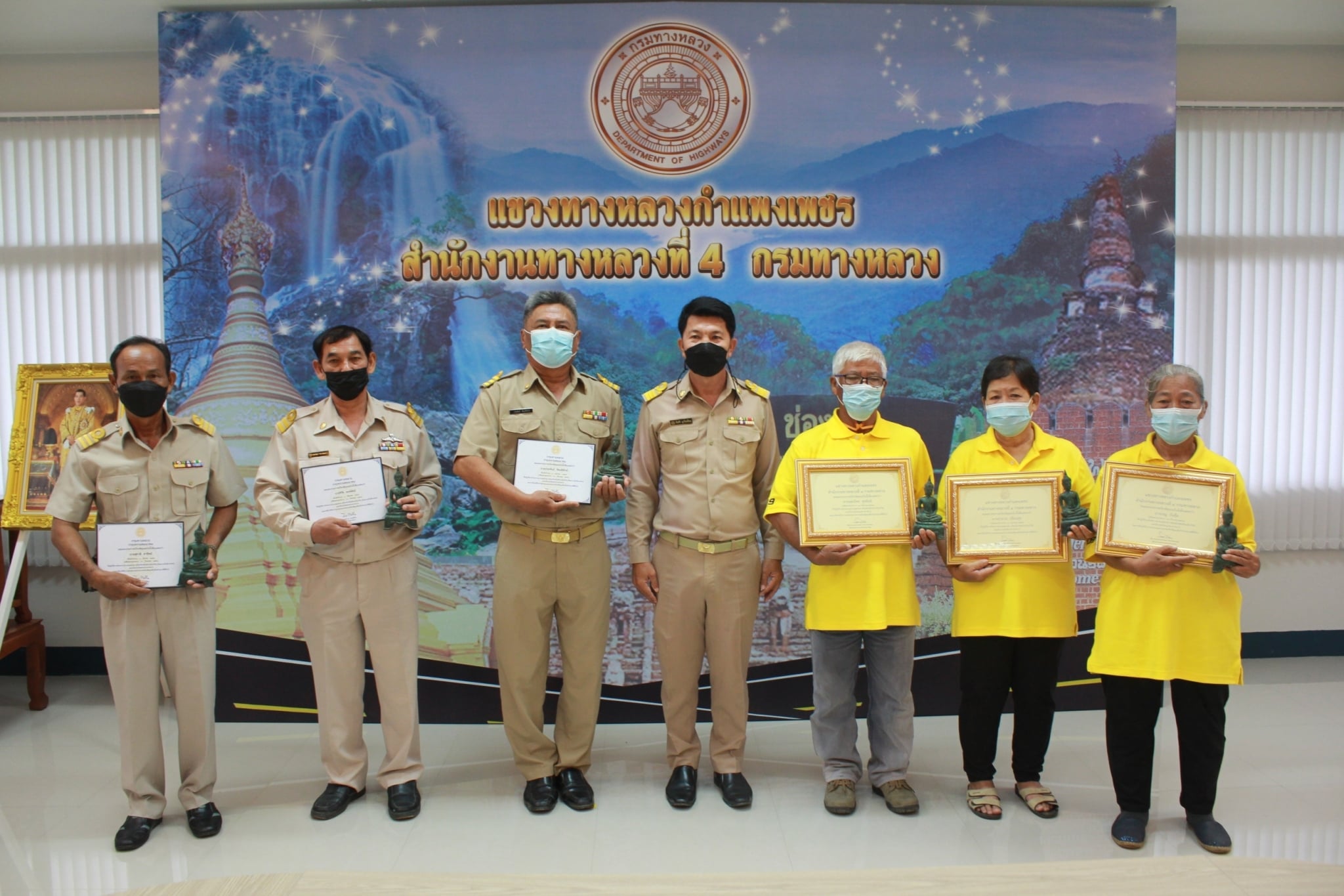 นายชัยศิริ ผูกใจเพื่อน เป็นประธานมอบโล่ที่ระลึกแก่เจ้าหน้าที่แขวงทางหลวงกำแพงเพชร ที่เกษียณอายุราชการประจำปี 2564