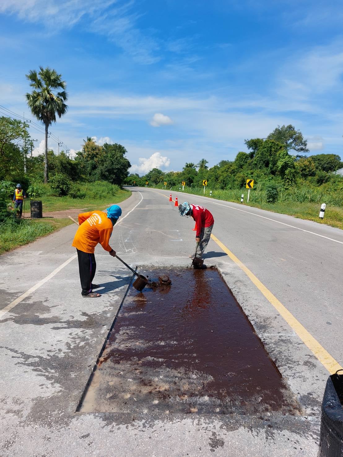 แขวงทางหลวงกำแพงเพชร โดย หมวดทางหลวงปากคลองลาน ดำเนินการปะซ่อมผิวทาง ทางหลวงหมายเลย 1242 ตอน โค้งวิไล - เขาน้ำอุ่น ที่ กม.20+810 และ กม.20+850 เพื่อให้ความสะดวก และปลอดภัยแก่ผู้ใช้เส้นทาง