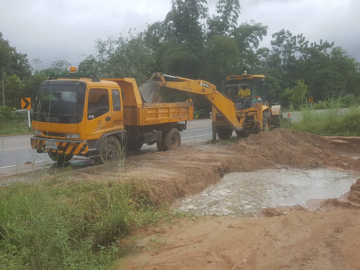 แขวงทางหลวงกำแพงเพชร โดย หมวดทางหลวงคลองลานพัฒนา ดำเนินการขุดลอกทางระบายน้ำ ทางหลวงหมายเลย 1117 ตอน คลองแม่ลาย - อุ้มผาง ระหว่าง กม.55+100 เพื่อให้ความสะดวก และปลอดภัยแก่ผู้ใช้เส้นทาง