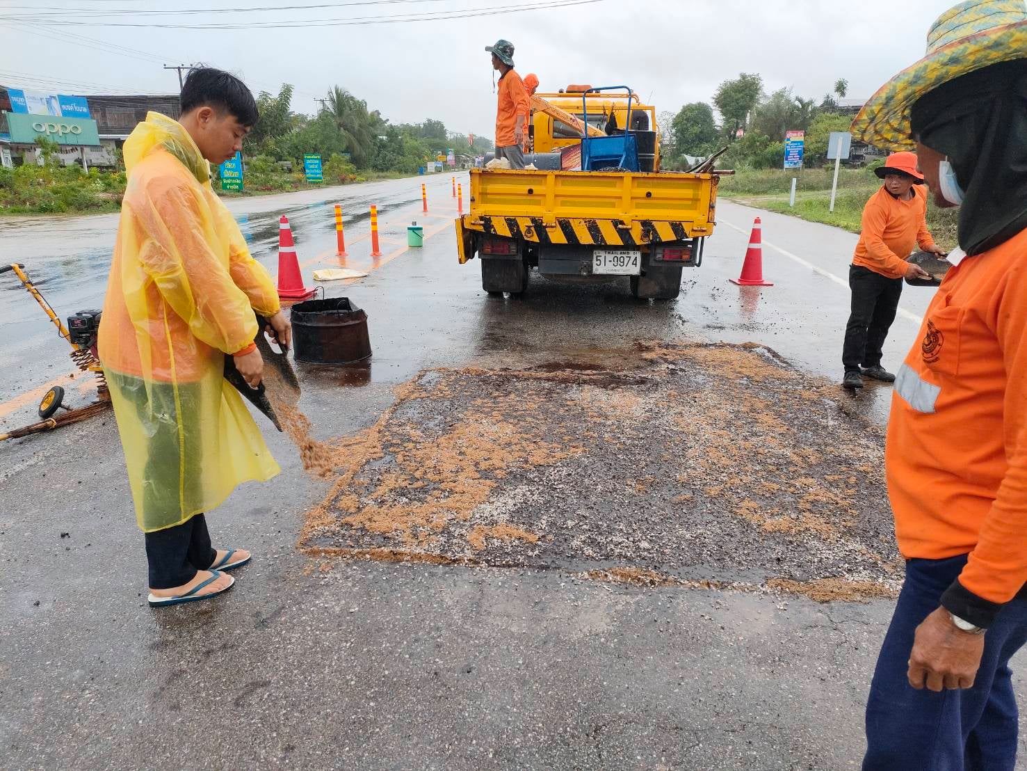 แขวงทางหลวงกำแพงเพชร โดย หมวดทางหลวงโกสัมพีนคร ดำเนินการปะซ่อมผิวทาง ทางหลวงหมายเลย 1116 ตอน มอเจริญ - หนองแดน ที่ กม.25+570 เพื่อให้ความสะดวกและปลอดภัยแก่ผู้ใช้เส้นทาง