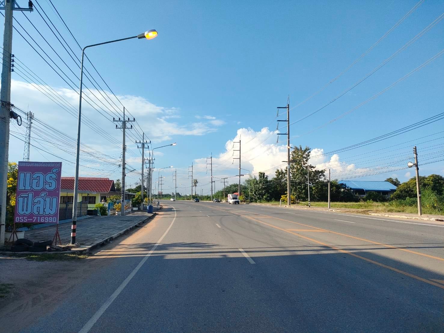 แขวงทางหลวงกำแพงเพชร โดย งานปรับซ่อม ดำเนินการซ่อมแซมเปลี่ยนอุปกรณ์ไฟฟ้าแสงสว่าง ทางหลวงหมายเลข 1084 ตอน หาดชะอม - กำแพงเพชร ระหว่าง กม.113+200 - กม.114+950 เพื่อความสะดวก และความปลอดภัยแก่ผู้ใช้เส้นทาง