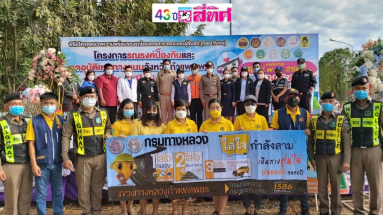 วันพุธ ที่ 29 ธันวาคม 2564 เวลา 14.30 น. นายชัยศิริ ผูกใจเพื่อน ผอ.ขท.กำแพงเพชร มอบหมายให้นางณิชาดา รอดพินิจ หัวหน้าหมวดทางหลวงโกสัมพีนคร, นางสุดารัตน์ เสมาฉิม หัวหน้างานสารสนเทศ พร้อมคณะแขวงทางหลวงกำแพงเพชร เข้าร่วมพิธีเปิดจุดตรวจความพร้อมของรถโดยสารสารธารณะและผู้ขับรถและให้บริการประชาชน เทศกาลปีใหม่ 2565 บริเวณทางหลวงหมายเลข 1 ตอน นครชุม-วังเจ้า กม.465+656 ด้านขวาทาง โดยนางสาวสุพัตรา คล้ายทิม รองผู้ว่าราชการจังหวัดกำแพงเพชร เป็นปนะธานในพิธี
