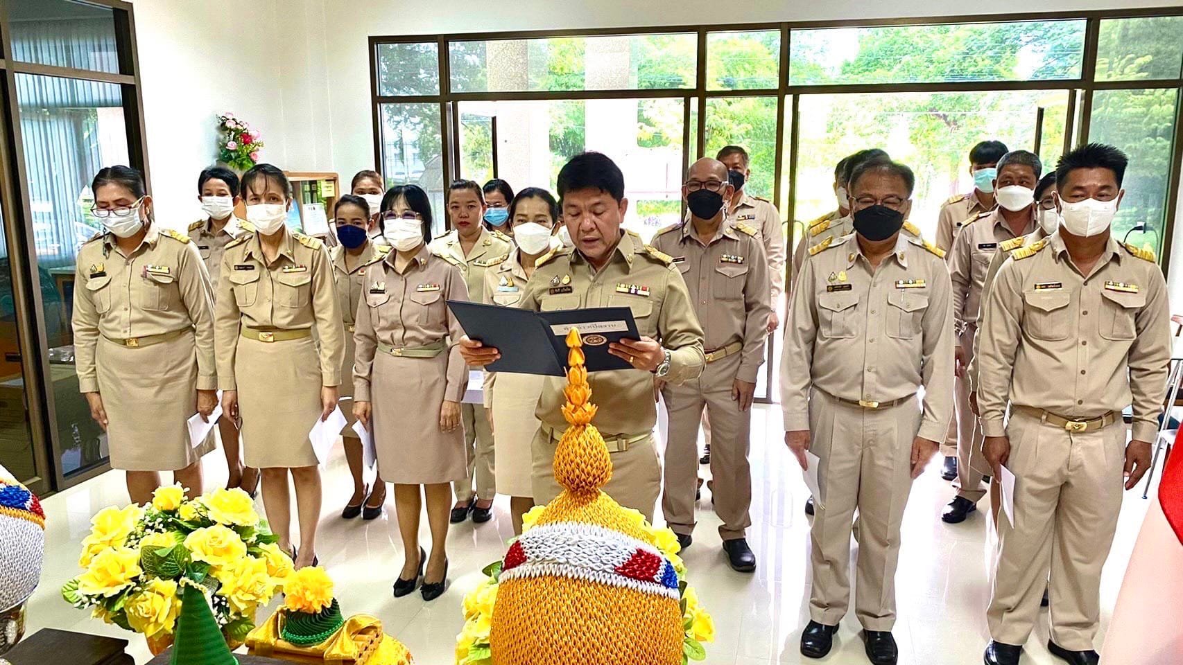 นายชัยศิริ ผูกใจเพื่อน ผู้อำนวยการแขวงทางหลวงกำแพงเพชร นำคณะข้าราชการ และเจ้าหน้าที่ในสังกัด กล่าวคำถวายสัตย์ปฏิญาณ เพื่อเป็นข้าราชการที่ดีและพลังของแผ่นดิน