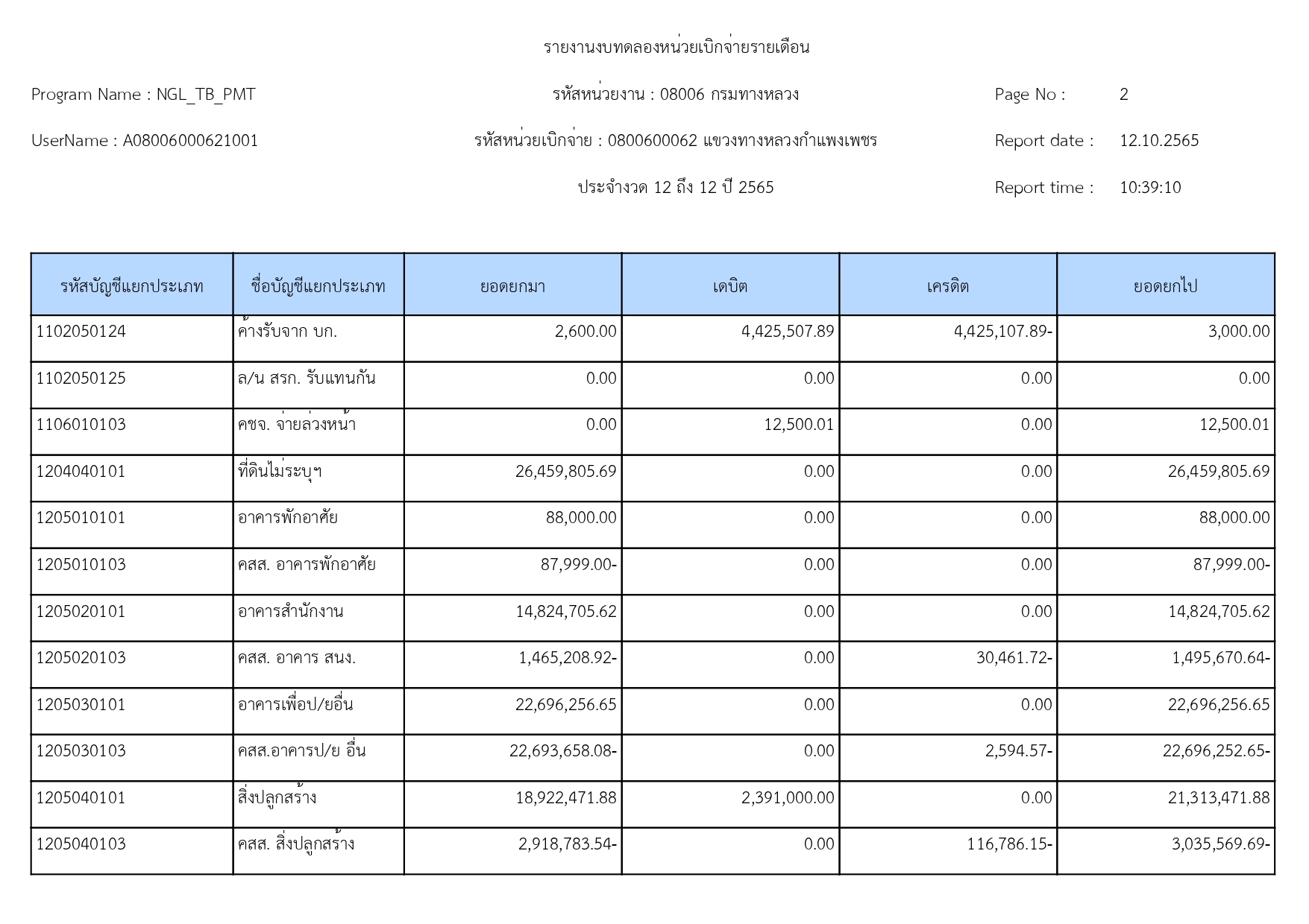 รายงานงบทดลองปีงบประมาณ 2565