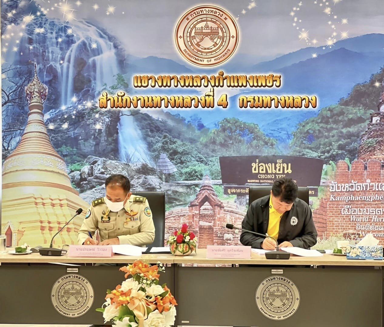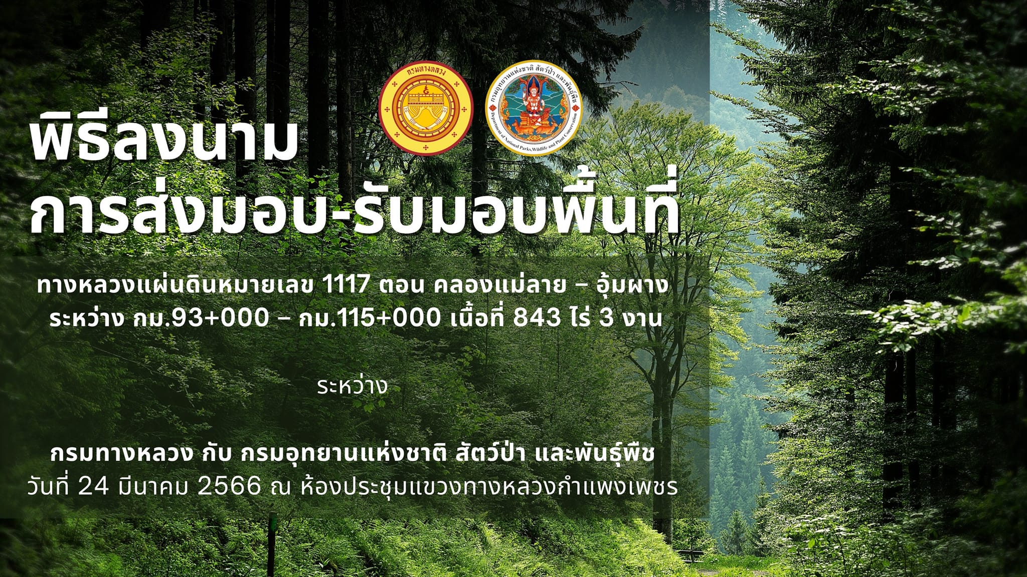 นายชัยศิริ ผูกใจเพื่อน ผู้อำนวยการแขวงทางหลวงกำแพงเพชร เป็นผู้แทนกรมทางหลวง พร้อมด้วยนายฐมศิลป์ ตันศรีตรัง รักษาการในตำแหน่ง วิศวกรโยธาชำนาญการพิเศษ สำนักแผนงาน, นายเดชา กุลกิจโรภาส รองผู้อำนวยการแขวงทางหลวงกำแพงเพชร ฝ่ายปฏิบัติการ, หัวหน้าหมวดทางหลวง และเจ้าหน้าที่ในสังกัด ร่วมพิธีลงนามการส่งมอบ-รับมอบพื้นที่ให้กรมอุทยานแห่งชาติสัตว์ป่า และพันธ์ุพืช ทางหลวงหมายเลข 1117 ตอนคลองแม่ลาย - อุ้มผาง ระหว่าง กม.93+000-กม.115+000 โดยนายปรยุษณ์ ว่องไว ผู้อำนวยสำนักบริหารพื้นที่อนุรักษ์ที่14 เป็นผู้แทนกรมอุทยานแห่งชาติ สัตว์ป่า และพันธ์พืช พร้อมด้วยนายบุญช่วย ชุนหกิจ ผู้อำนวยการส่วนอนุรักษ์สัตว์ป่า และนายอำนาจ ฟองชัย หัวหน้าเขตรักษาพันธุ์สัตว์ป่าอุ้มผาง ร่วมลงนามในบันทึกฯ ณ ห้องประชุมแขวงทางหลวงกำแพงเพชร