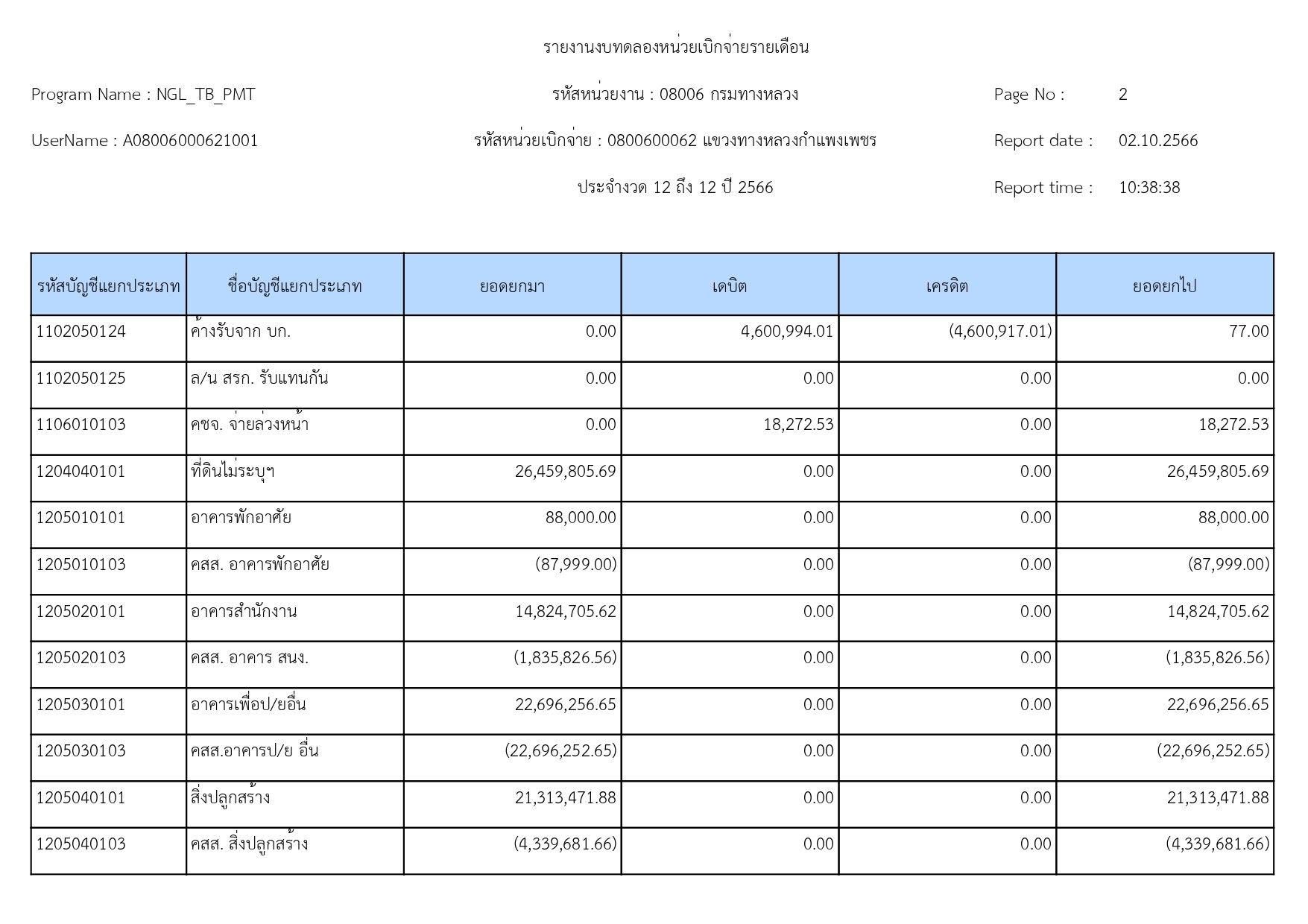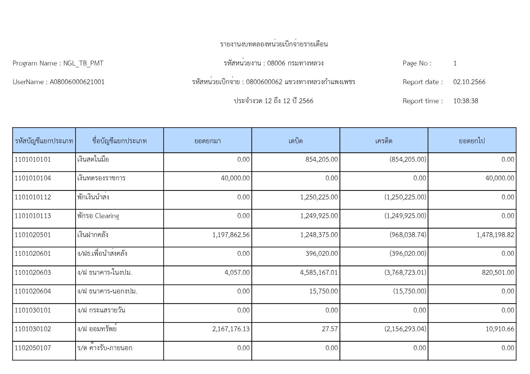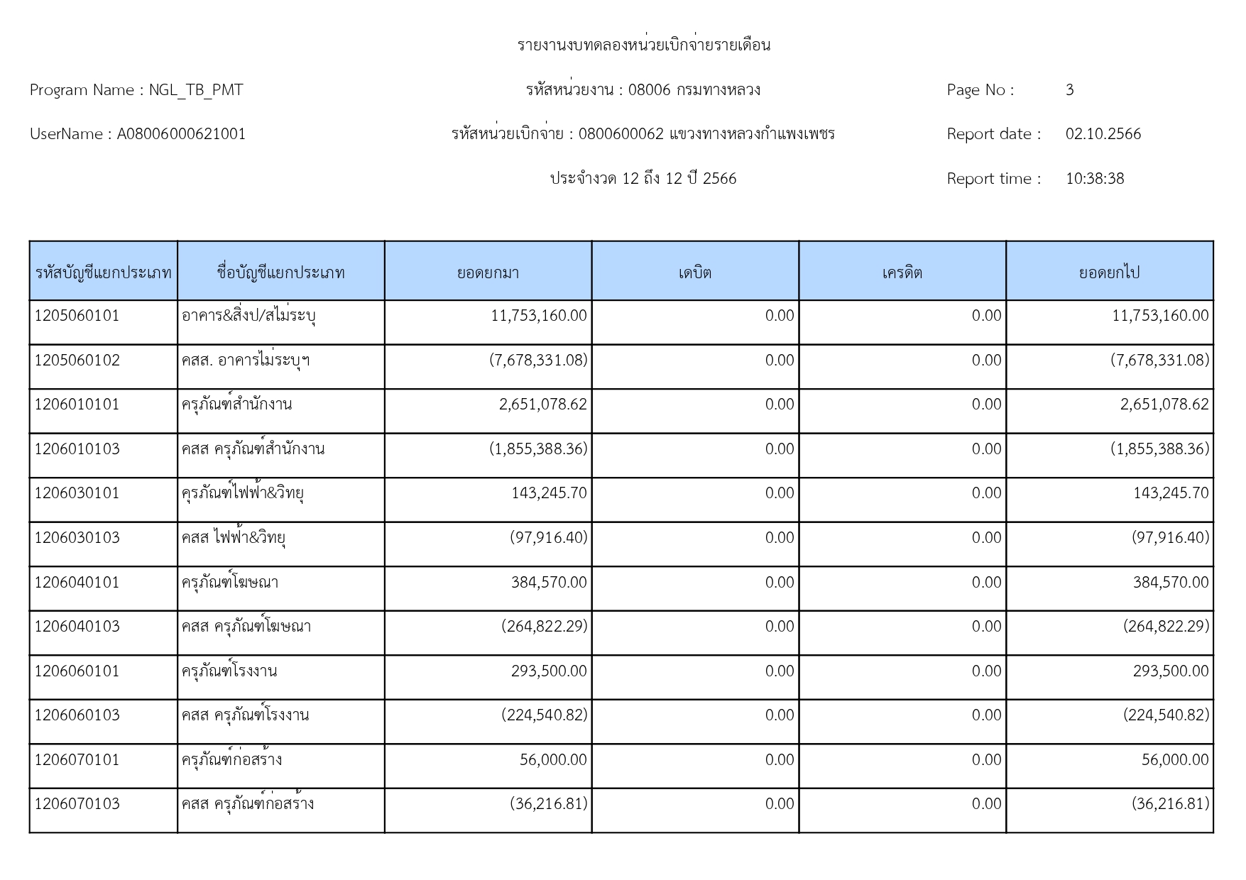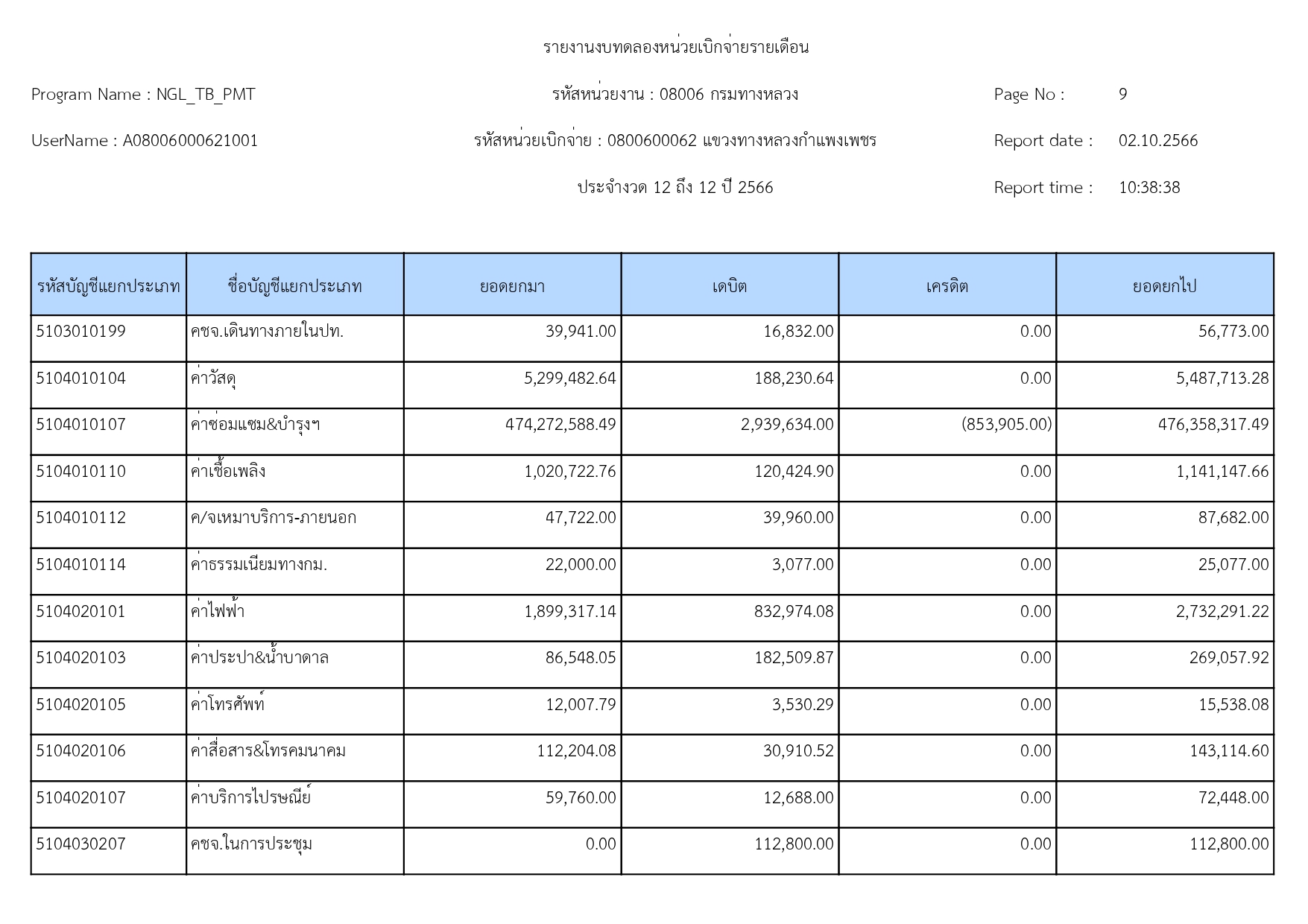 แขวงทางหลวงกำแพงเพชร แจ้งประชาสัมพันธ์รายงานงบทดลอง ประจำเดือน กันยายน 2566