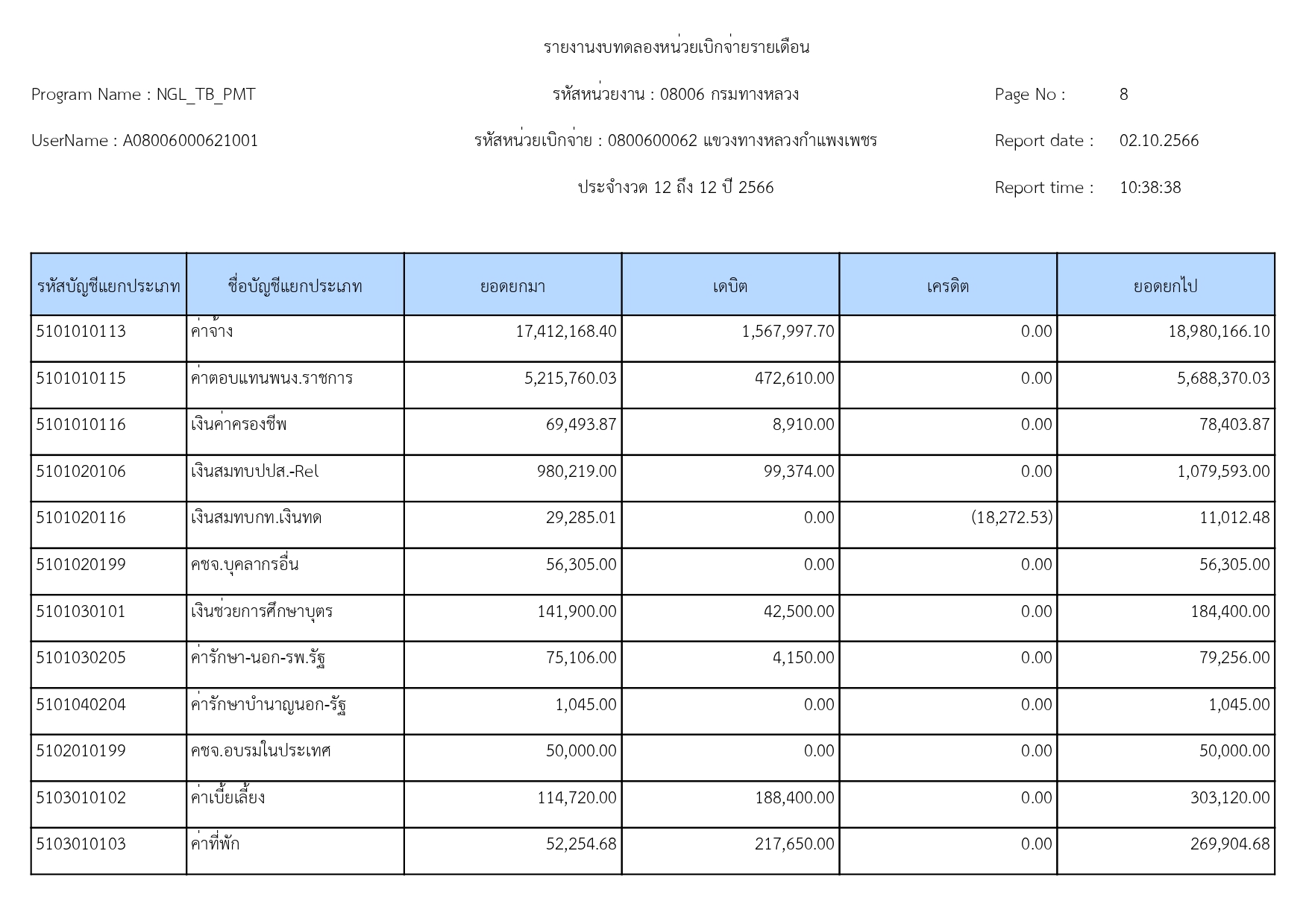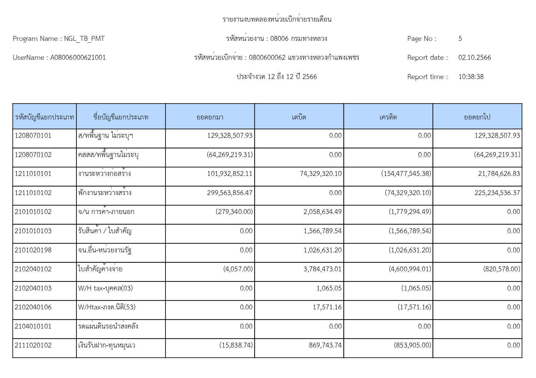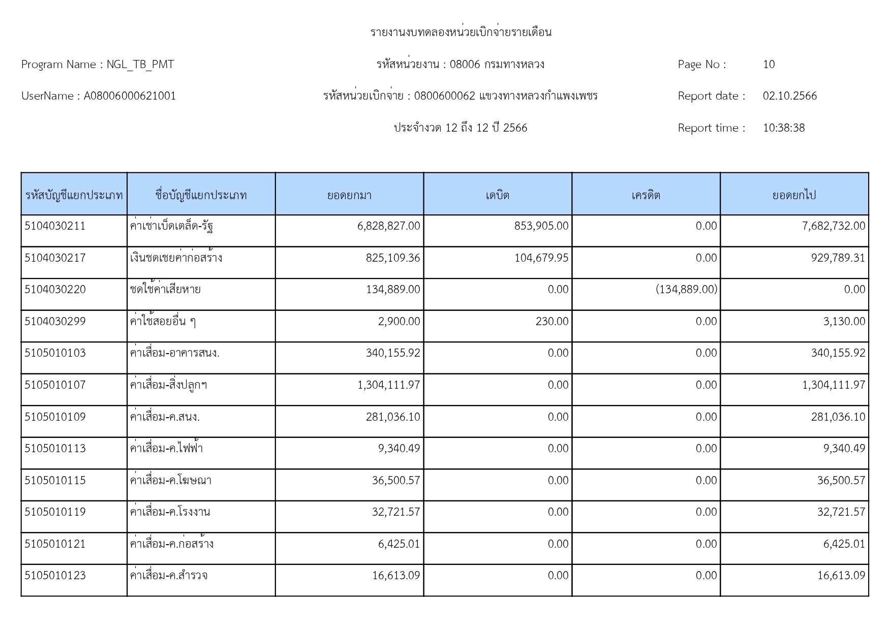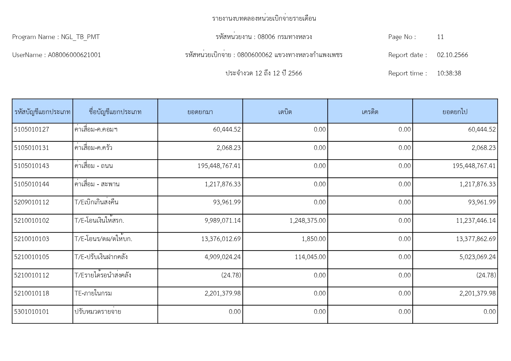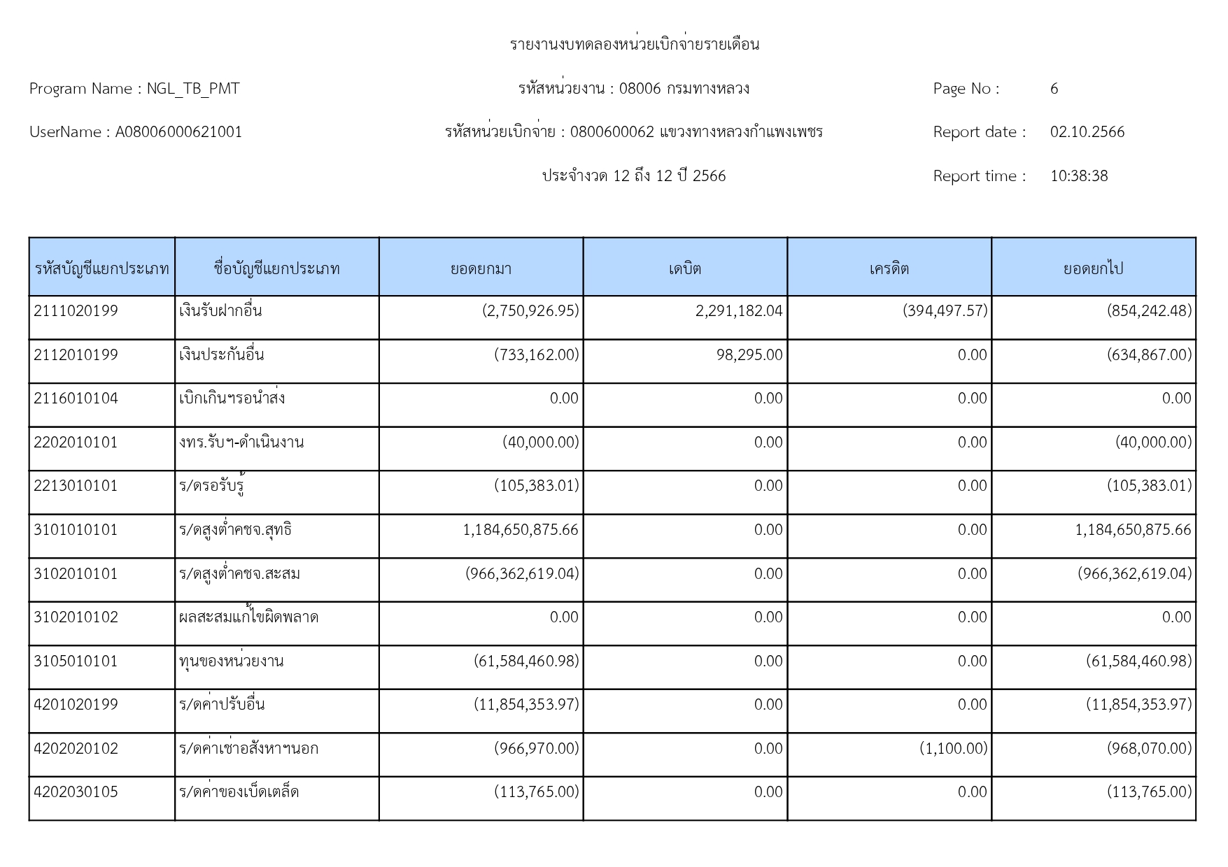 แขวงทางหลวงกำแพงเพชร แจ้งประชาสัมพันธ์รายงานงบทดลอง ประจำเดือน กันยายน 2566