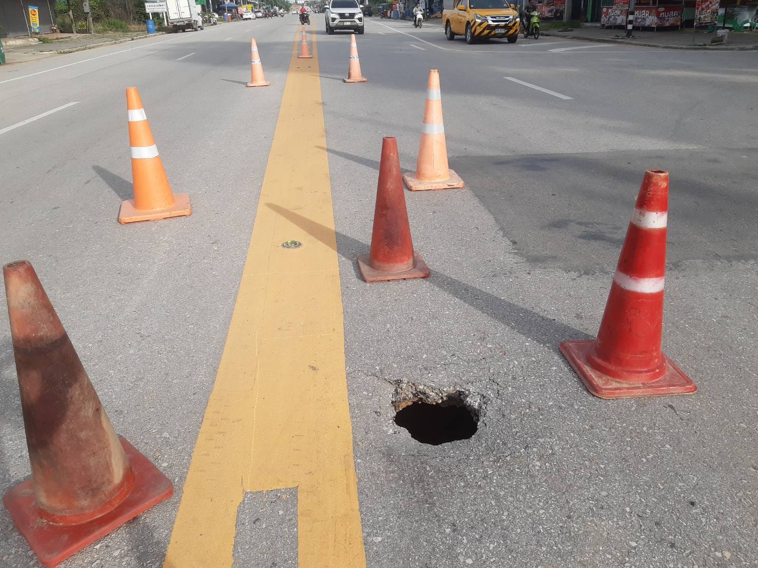 ข่าวประชาสัมพันธ์แขวงทางหลวงกำแพงเพชร "ผิวทางยุบเป็นโพรง แขวงฯ อยู่ระหว่างดำเนินการซ่อมแซม โปรดใช้เส้นทางด้วยความระมัดระวัง"