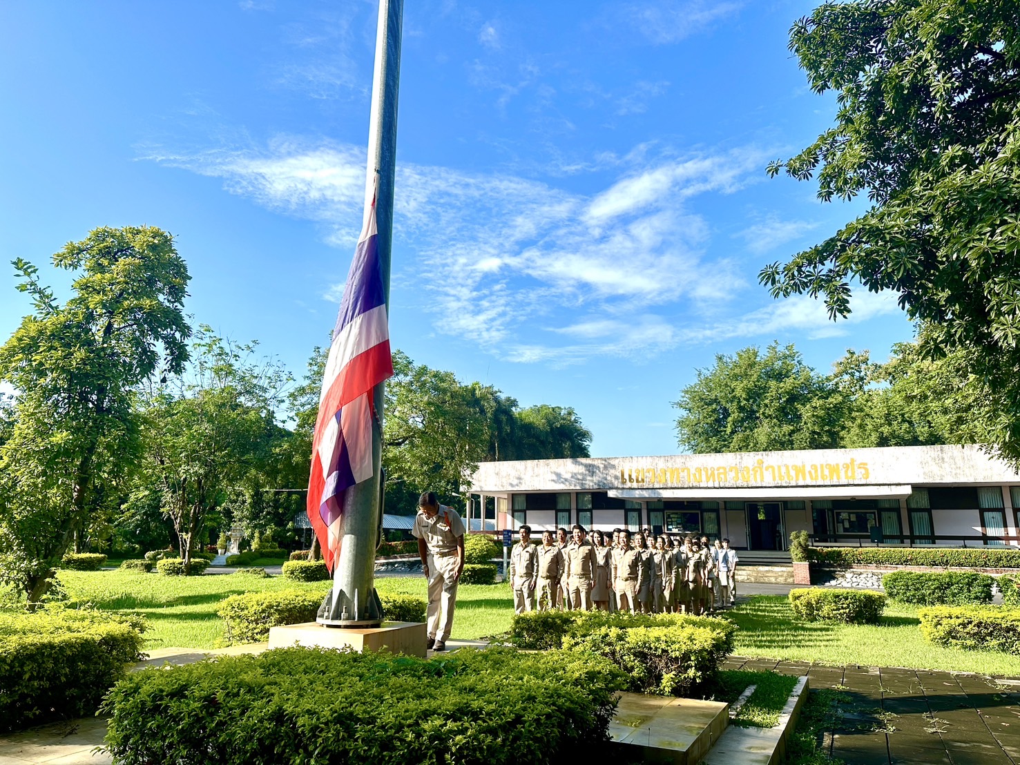นายชัยศิริ ผูกใจเพื่อน ผู้อำนวยการแขวงทางหลวงกำแพงเพชร พร้อมด้วยคณะผู้บริหาร ข้าราชการ และเจ้าหน้าที่ในสังกัด เข้าร่วมกิจกรรมเคารพธงชาติและร้องเพลงชาติไทย เนื่องในวันพระราชทานธงชาติไทย 28 กันยายน (Thai National Flag Day) ประจำปี 2567 เพื่อน้อมรำลึกในพระมหากรุณาธิคุณ พระบาทสมเด็จพระมงกุฎเกล้าเจ้าอยู่หัว ที่ทรงพระราชทานธงไตรรงค์ เป็นธงชาติไทย ณ บริเวณหน้าเสาธง สำนักงานแขวงทางหลวงกำแพงเพชร