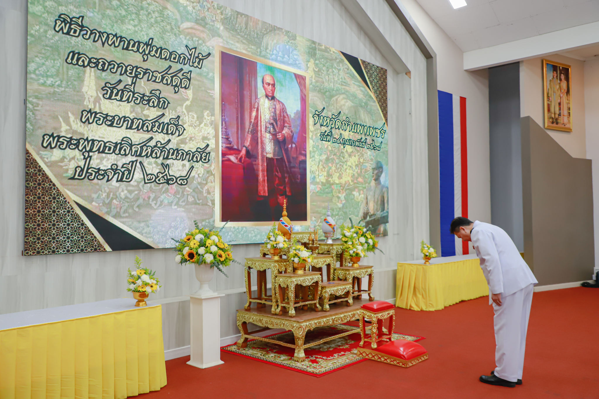 นายชัยศิริ ผูกใจเพื่อน ผู้อำนวยการแขวงทางหลวงกำแพงเพชร มอบหมายให้นายสุชาติ ตาทิพย์ รองผู้อำนวยการฝ่ายวิศวกรรม พร้อมข้าราชการ และเจ้าหน้าที่ในสังกัด ร่วมพิธีวางพานพุ่มดอกไม้ และถวายราชสดุดี เนื่องในวันที่ระลึก “พระบาทสมเด็จพระพุทธเลิศหล้านภาลัย” ประจำปี 2568 เพื่อน้อมรำลึกในพระมหากรุณาธิคุณฯ ณ หอประชุมใหญ่ ศูนย์ราชการจังหวัดกำแพงเพชร โดยมีนายชาธิป รุจนเสรี ผู้ว่าราชการจังหวัดกำแพงเพชร เป็นประธานในพิธีฯ