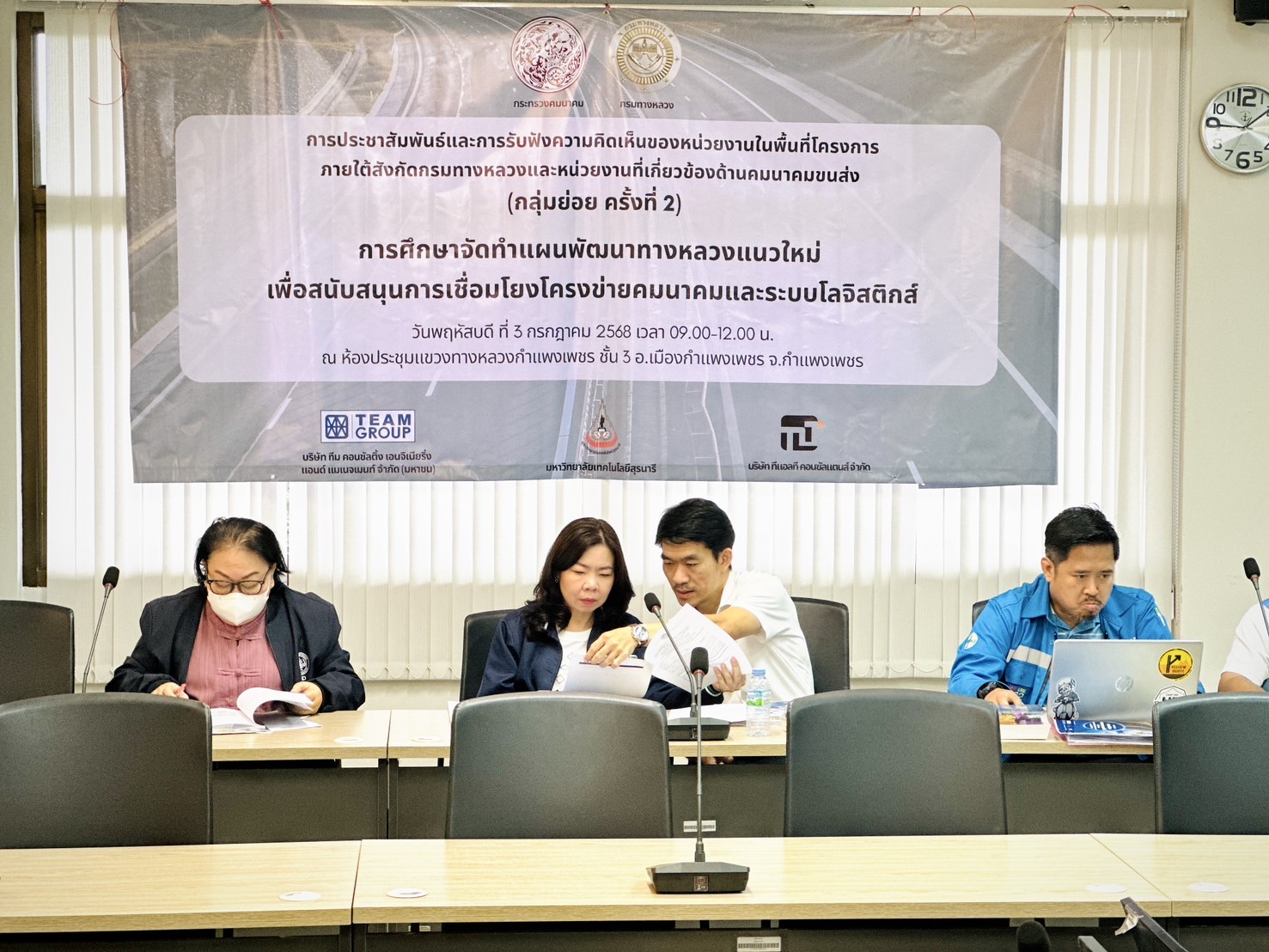 ข่าวประชาสัมพันธ์แขวงทางหลวงกำแพงเพชร วันพฤหัสบดี ที่ 3 กรกฎาคม 2568 แขวงฯ ร่วมประชุมรับฟังความคิดเห็นของหน่วยงานภายใต้สังกัดกรมทางหลวงและหน่วยงานที่เกี่ยวข้องด้านคมนาคมขนส่งในพื้นที่โครงการ (กลุ่มย่อย ครั้งที่ 2)