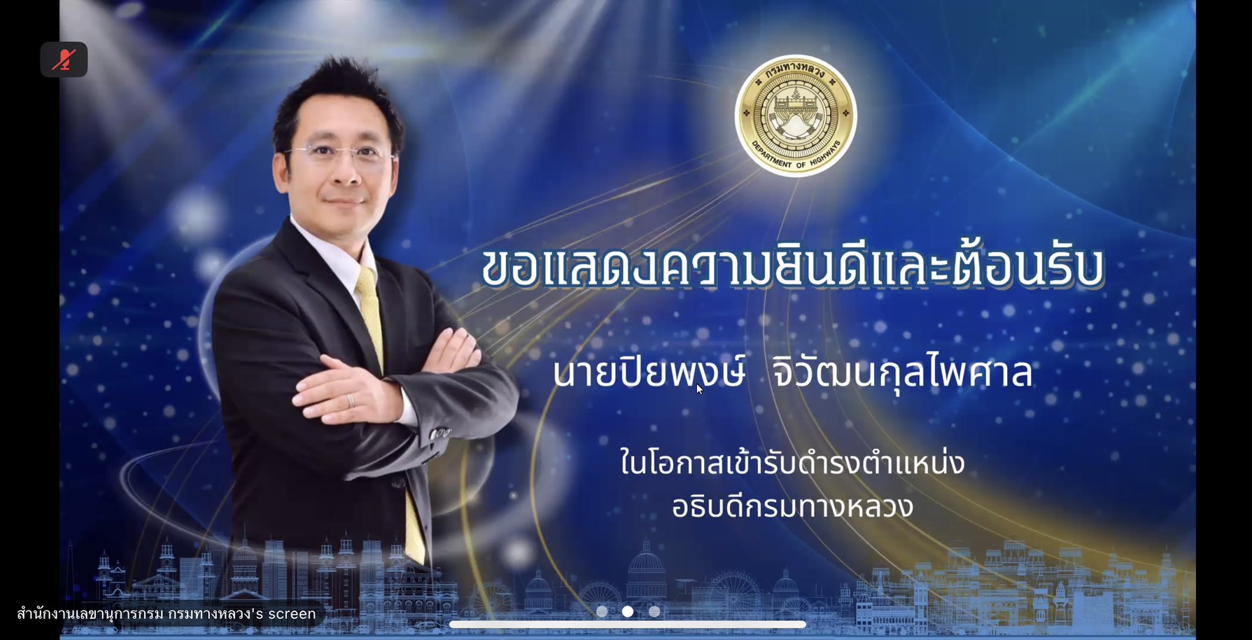 นายชัยศิริ ผูกใจเพื่อน ผู้อำนวยการแขวงทางหลวงกำแพงเพชร มอบหมายให้นายสุชาติ ตาทิพย์ รองผู้อำนวยการฝ่ายวิศวกรรม, นายเดชา กุลกิจวโรภาส รองผู้อำนวยการฝ่ายปฏิบัติการ, นางปารียา เกตุทิม รองผู้อำนวยการฝ่ายบริหาร, ข้าราชการ และเจ้าหน้าที่ในสังกัด เข้าร่วมต้อนรับและรับมอบนโยบายการบริหารงานของ นายปิยพงษ์ จิวัฒนกุลไพศาล เนื่องในโอกาสเข้าปฏิบัติหน้าที่ในตำแหน่งอธิบดีกรมทางหลวง ผ่านสื่ออิเล็กทรอนิกส์ แอปพลิเคชั่น Zoom Cloud Meeting ณ ห้องประชุมแขวงทางหลวงกำแพงเพชร ชั้น 3
