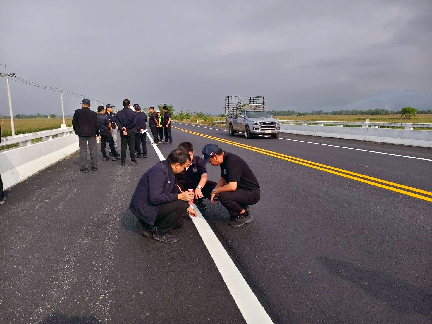 นายพัลลภ จันทร์งามปภากูล ผู้อำนวยการสำนักบริหารบำรุงทาง ประธานคณะอนุกรรมการประเมินผลงานบำรุงทาง งานอำนวยความปลอดภัย ประจำปี 2568 พร้อมคณะฯ ร่วมลงพื้นที่ภาคสนามเพื่อตรวจประเมินผลงานบำรุงทางหมวดทางหลวงนครชุม แขวงทางหลวงกำแพงเพชร สำนักงานทางหลวงที่ 4 เพื่อคัดเลือกหัวหน้าหมวดทางหลวง ระดับดีและดีเด่น ประจำปี 2568 โดยมีนายสิทธิโชค ลี้มิ่งสวัสดิ์ ผู้อำนวยการสำนักงานทางหลวงที่ 4, นายชัยศิริ ผูกใจเพื่อน ผู้อำนวยการแขวงทางหลวงกำแพงเพชร, นายสุปรีชา ฟุ้งกีรติ ผู้อำนวยการแขวงทางหลวงสุโขทัย, นายสุชาติ ตาทิพย์ รองผู้อำนวยการแขวงทางหลวงกำแพงเพชร ฝ่ายวิศวกรรม, นายเดชา กุลกิจวโรภาส รองผู้อำนวยการแขวงทางหลวงกำแพงเพชร ฝ่ายปฏิบัติการ, นายประวิทย์ นาคคุ้ม หัวหน้าหมวดทางหลวงนครชุม และเจ้าหน้าที่ในสังกัด ร่วมให้การต้อนรับ พร้อมรับฟังการบรรยายสรุปผลการปฏิบัติงาน และลงพื้นที่ตรวจประเมินผลงานสายทางในความรับผิดชอบ