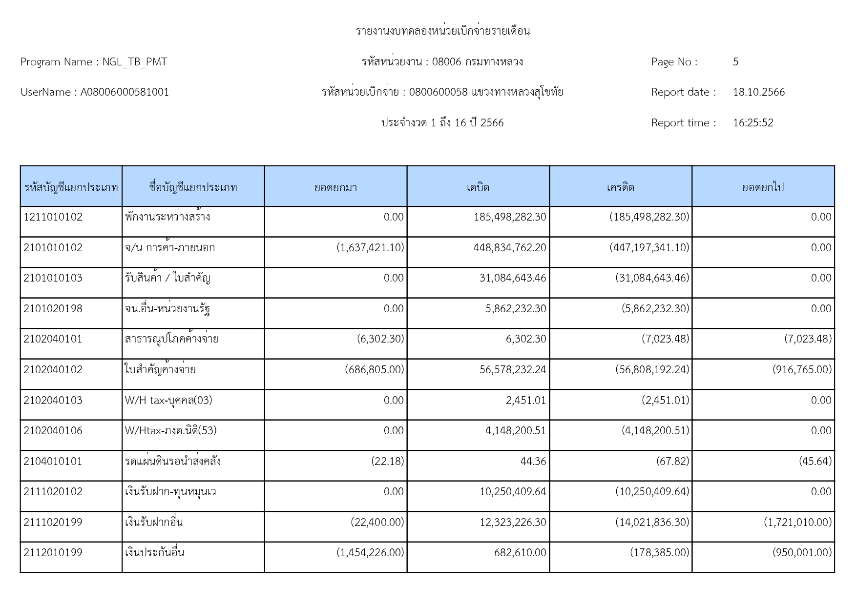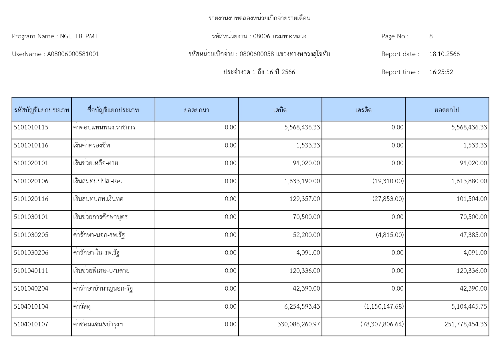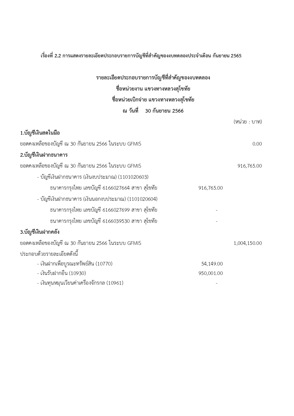 ข้อมูลข่าว : งบทดลองแขวงทางหลวงสุโขทัย ประจำปีงบประมาณ 2566