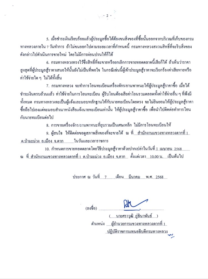 ประกาศกรมทางหลวง ตก(พ 4)/1/2568 เรื่อง ขายทอดตลาด เครื่องจักร/ยานพาหนะ จำนวน 66 รายการ