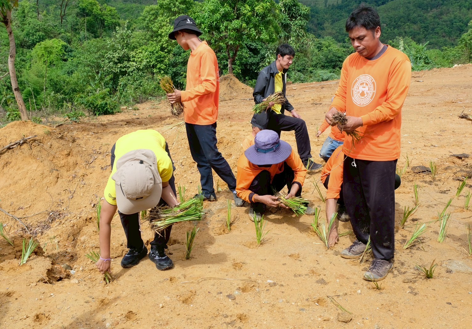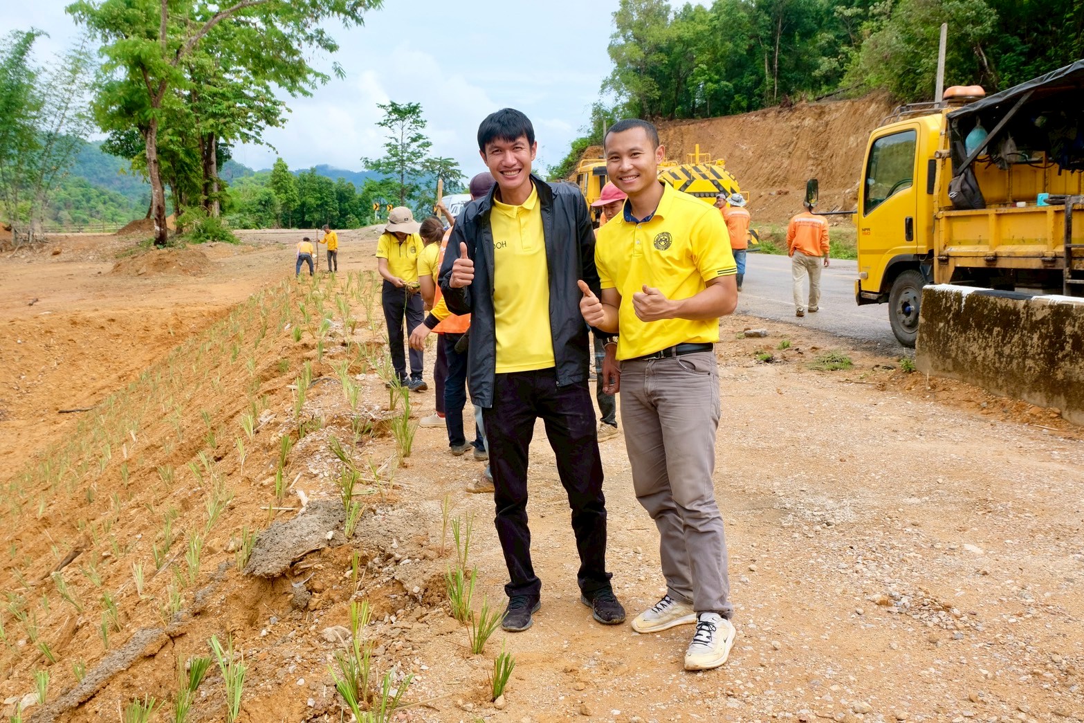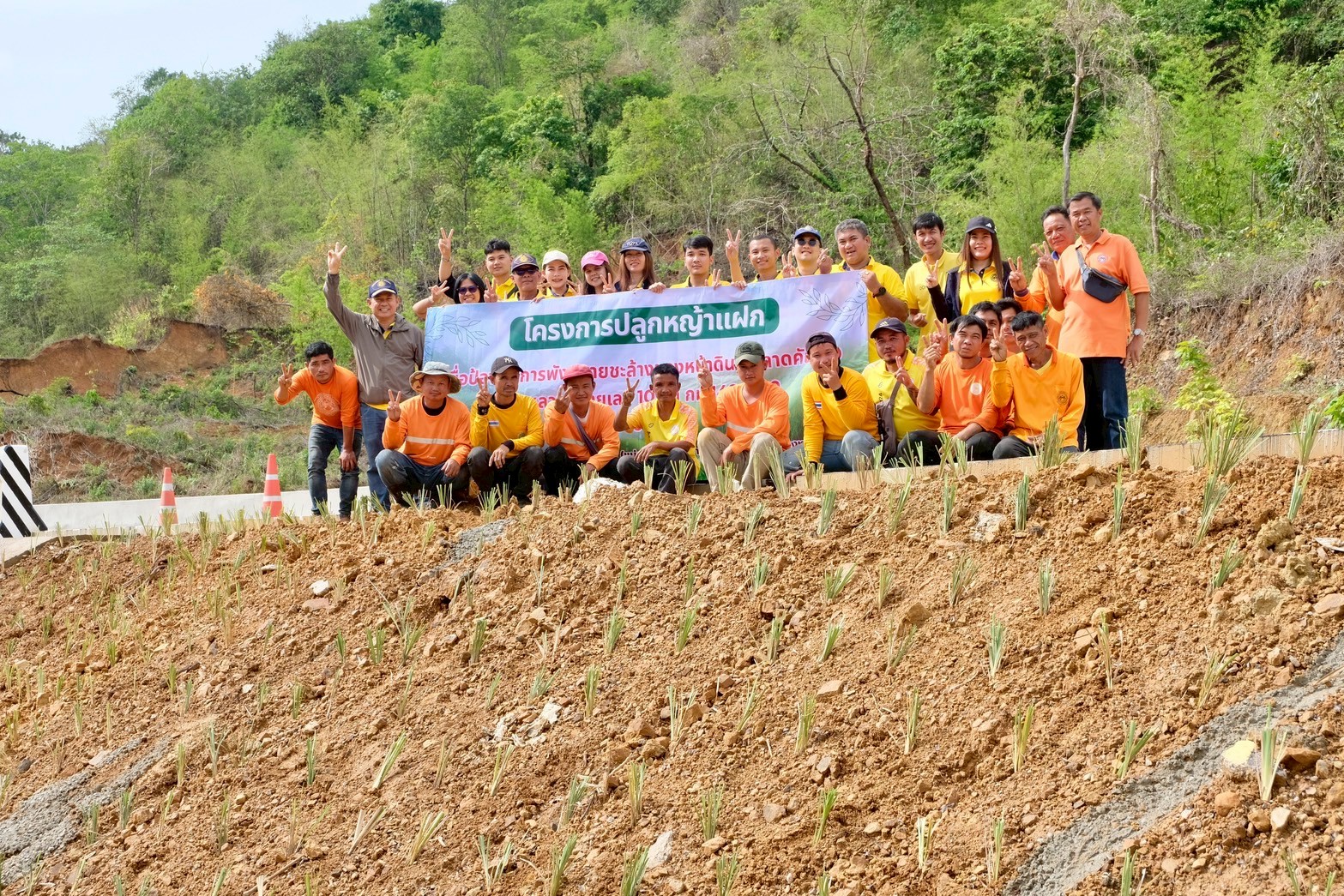 ได้ร่วมจัดโครงการปลูกหญ้าแฝก เพื่อป้องกันการพังทลายชะล้างของหน้าดินเชิงลาดคันทาง